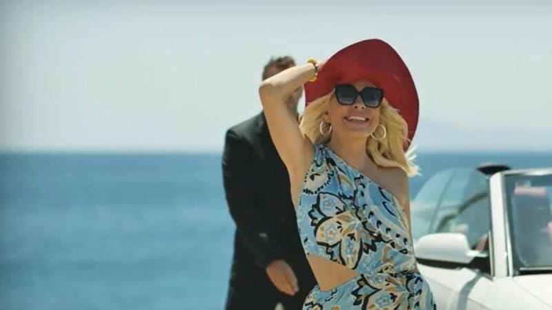 Όπως παρακολουθήσαμε στο trailer που κυκλοφόρησε, η παρουσιάστρια εμφανίστηκε με μακρύ με pirnt φόρεμα αλλά και τεράστιο καπέλο, σαν ντίβα του hollywood, με σκοπό να πάει για ψάρεμα.