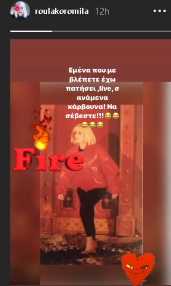 «Εμένα που με βλέπετε, έχω πατήσει Live σε αναμμένα κάρβουνα θα σέβεστε» έγραψε η Ρούλα κάτω από την φωτογραφία ντοκουμέντο…