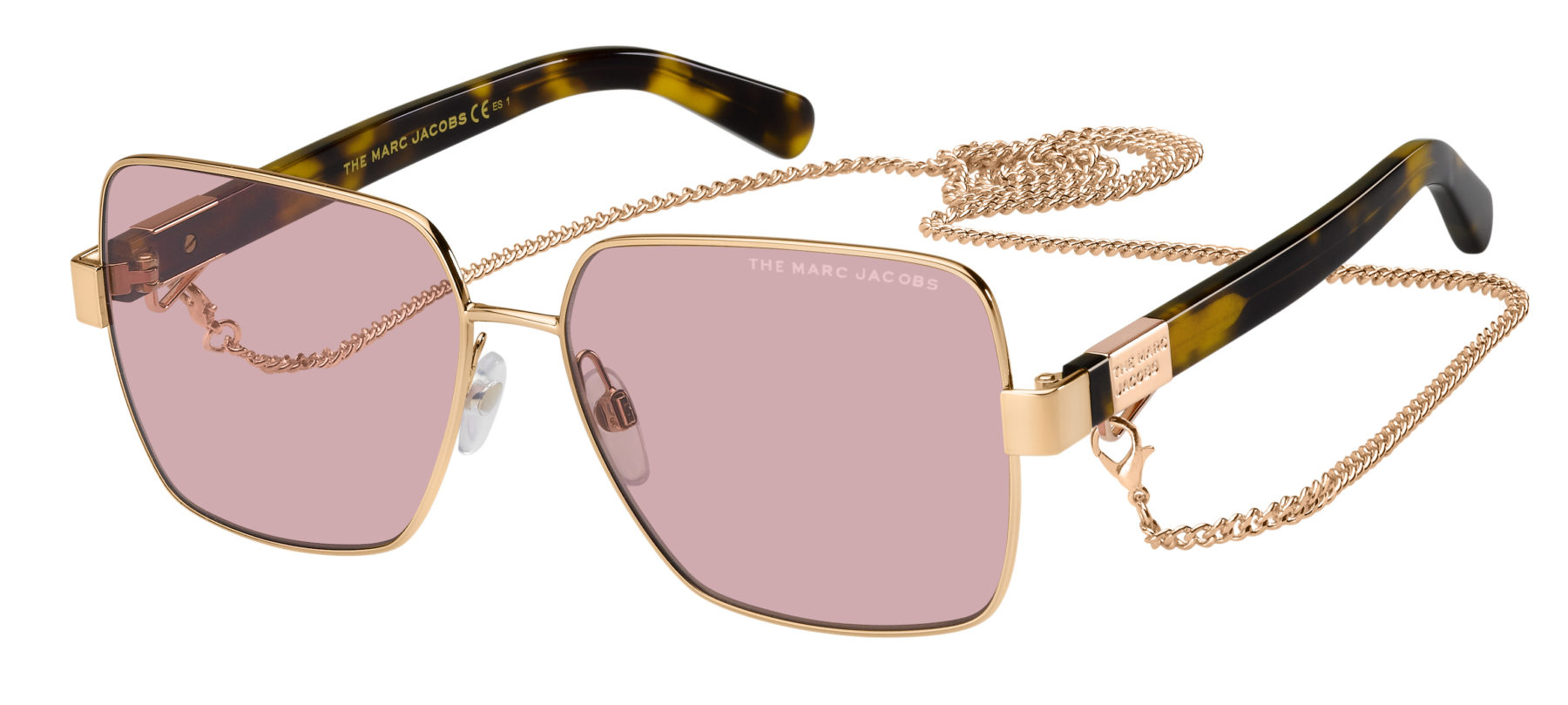 Τα γεωμετρικά γυαλιά ηλίου Marc 496/S διατίθενται σε χρυσό με μπλε φακούς, χρυσό/χάλκινο με μοβ φακούς, χρυσό/χάλκινο με ροζ φακούς, χρυσό με γκρι φακούς.