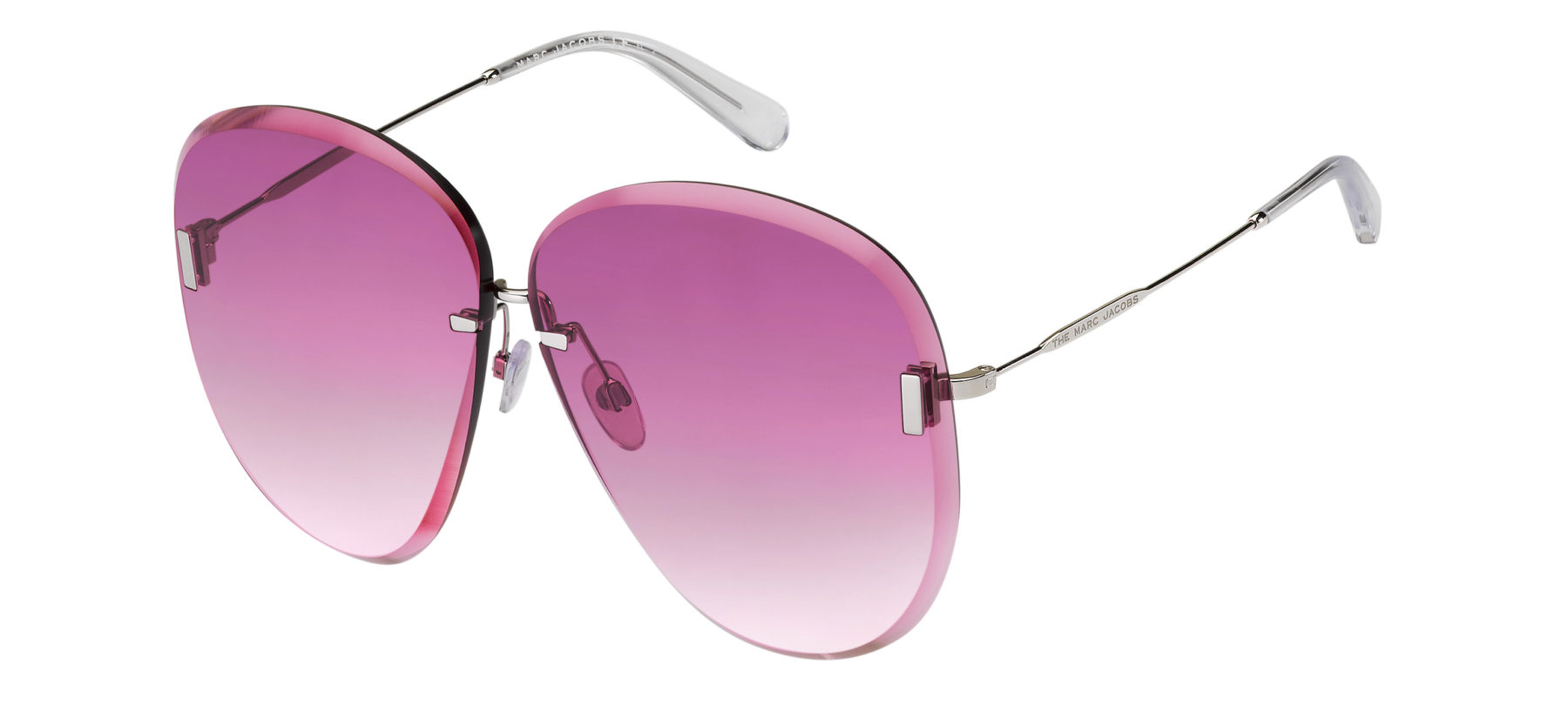 Με μότο «Μην περνάς Ποτέ Απαρατήρητη», αυτά τα εξαιρετικά, υπερμεγέθη γυαλιά ηλίου σε φόρμα πιλότου χωρίς περίγραμμα διαθέτουν μεταλλική δομή και μοναδικά έντονους φακούς, με υπέροχα ντεγκραντέ εφέ που είναι αποτέλεσμα της περίτεχνης κατασκευής τους, ώστε να τονίζουν τα μάτια και να τραβούν όλα τα βλέμματα. Η πλακέτα του λογότυπου «the Marc Jacobs» κοσμεί διακριτικά τους λεπτούς μεταλλικούς βραχίονες.