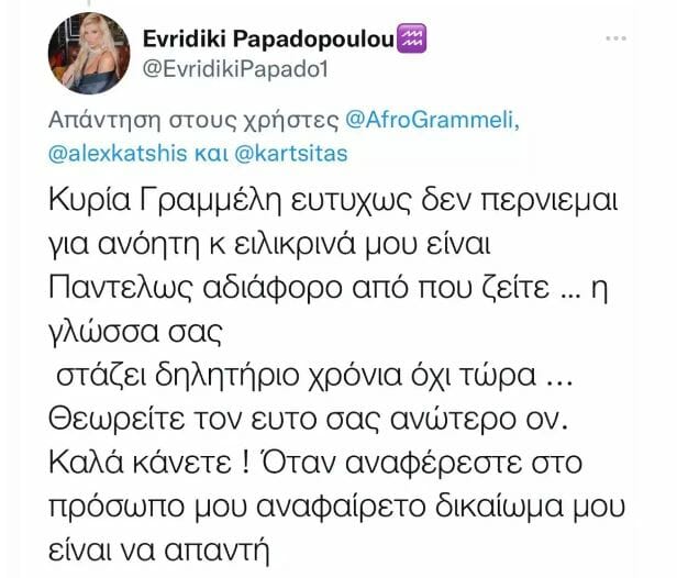 Η Αφροδίτη Γραμμέλη ξέσπασε για αυτό το συμβάν και έγραψε ένα αιχμηρό κείμενο για εκείνη ξεκινώντας με αυτό τον τρόπο μια νέα κόντρα.