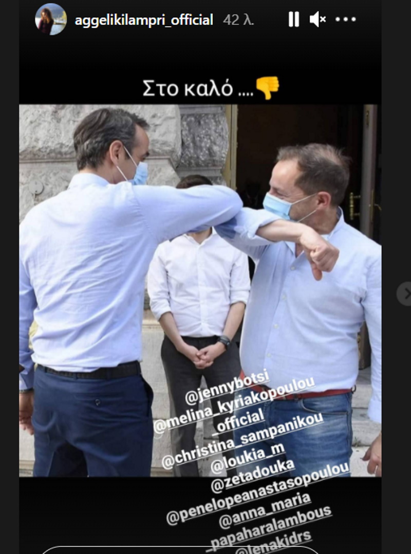 Λίγες ώρες μετά την παραίτηση του Δημήτρη Λιγνάδη από τη θέση του καλλιτεχνικού διευθυντή του Εθνικού Θεάτρου, η ηθοποιός δημοσίευσε στα stories του προφίλ της στο Instagram, μια φωτογραφία με τον Δημήτρη Λιγνάδη ενώ έγραψε μόνο τη φράση “Στο καλό”.