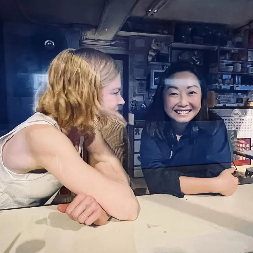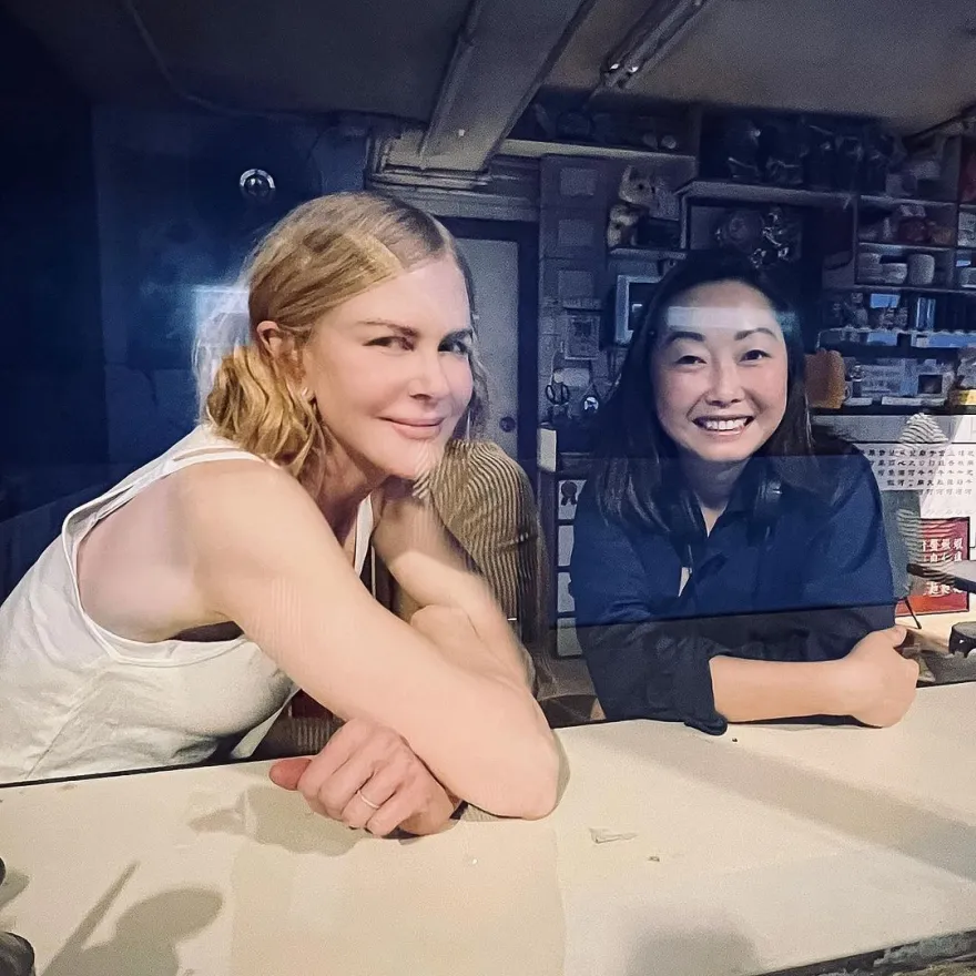 Πιο συγκεκριμένα η χολιγουντιανή ηθοποιός ποζάρει δίπλα με την Lulu Wang, τη σκηνοθέτιδα της νέας σειράς «Expats του Amazon», τελείως άβαφη και φαίνεται τεντωμένο το πρόσωπό της από τις παρεμβάσεις.