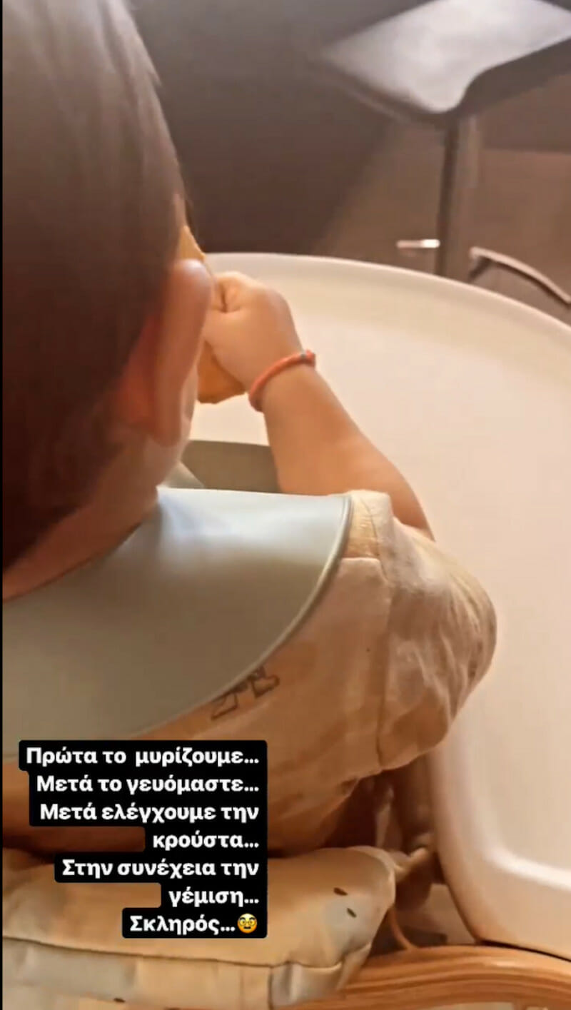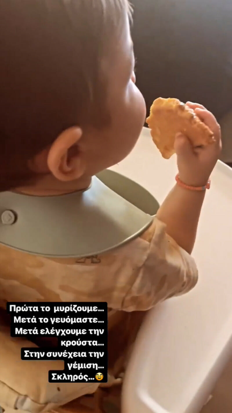 Ο Αχιλλέας φορώντας την πιπίλα του στο τέλος δοκίμασε το τυροπιτάκι!
