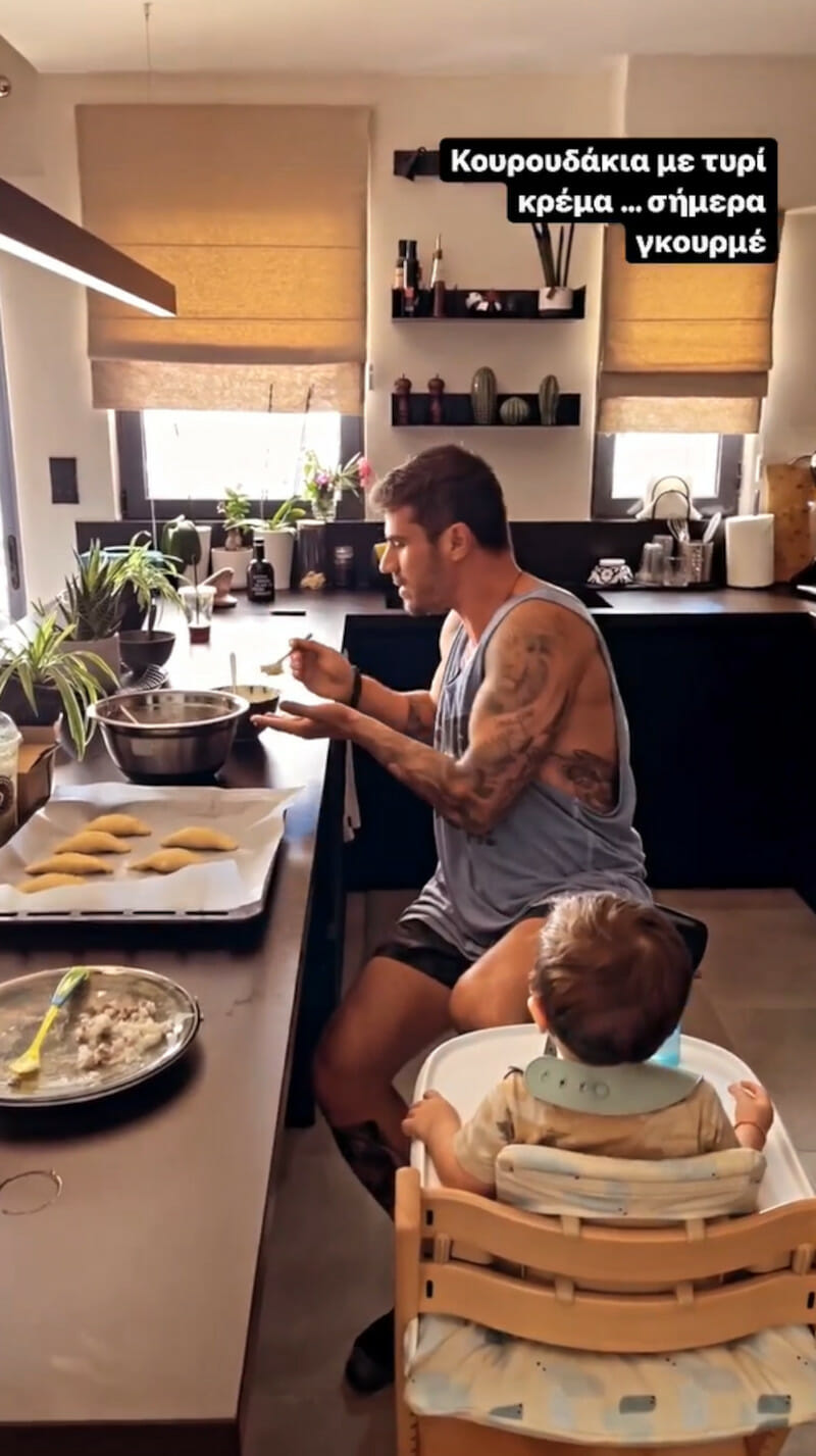 O γνωστός σεφ Άκης Πετρετζίκης δημοσίευσε ένα βίντεο στα Instagram Stories, όπου πατέρας και γιος βρίσκονται στην κουζίνα του σπιτιού τους και μαγειρεύουν τυροπιτάκια στον φούρνο.