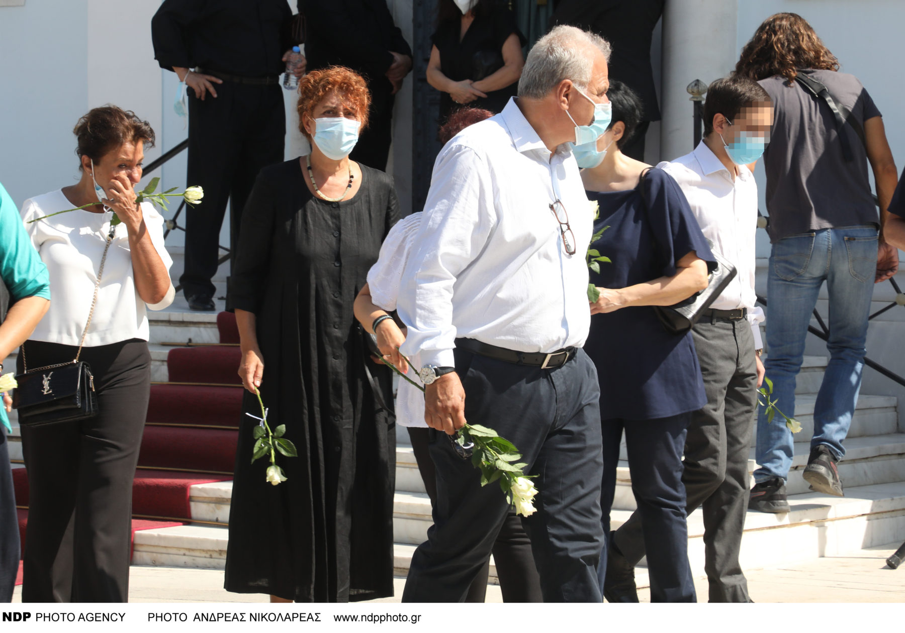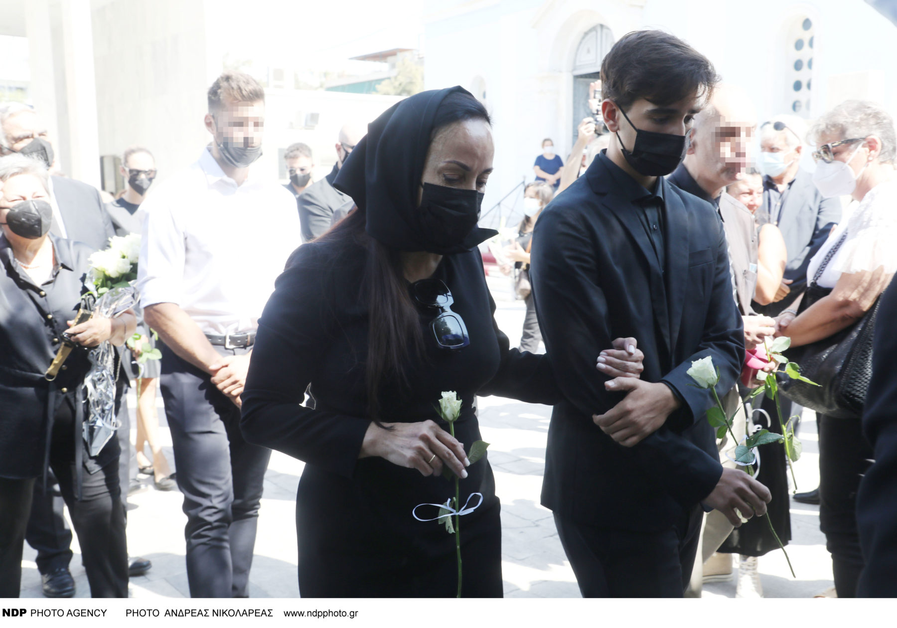 Στο πλευρό της είχε τον 14χρονο μονάκριβο γιο τους Άκη, ο οποίος ήταν σιωπηλός αλλά και φανερά συγκινημένος.