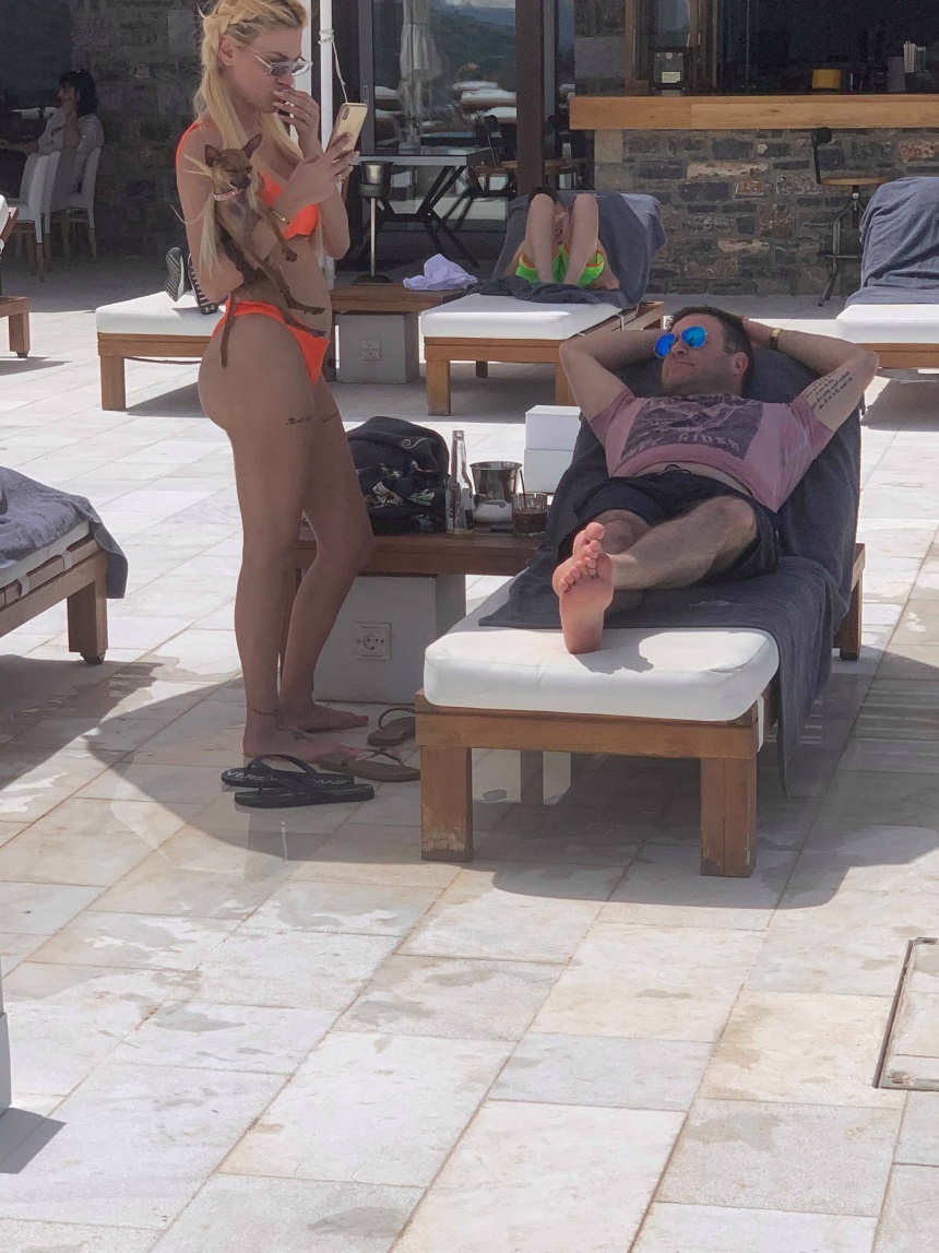 Ο φακός απαθανάτισε την παίκτρια του προηγούμενου κύκλου του My Style Rocks με τον σύζυγό της σε πολυτελές ξενοδοχείο του κρητικού θέρετρου να απολαμβάνουν τον ήλιο και τις βουτιές στη πισίνα. Με το δε πορτοκαλί της μπικίνι και με τέτοια κορμάρα, απογείωσε την αδρεναλίνη.