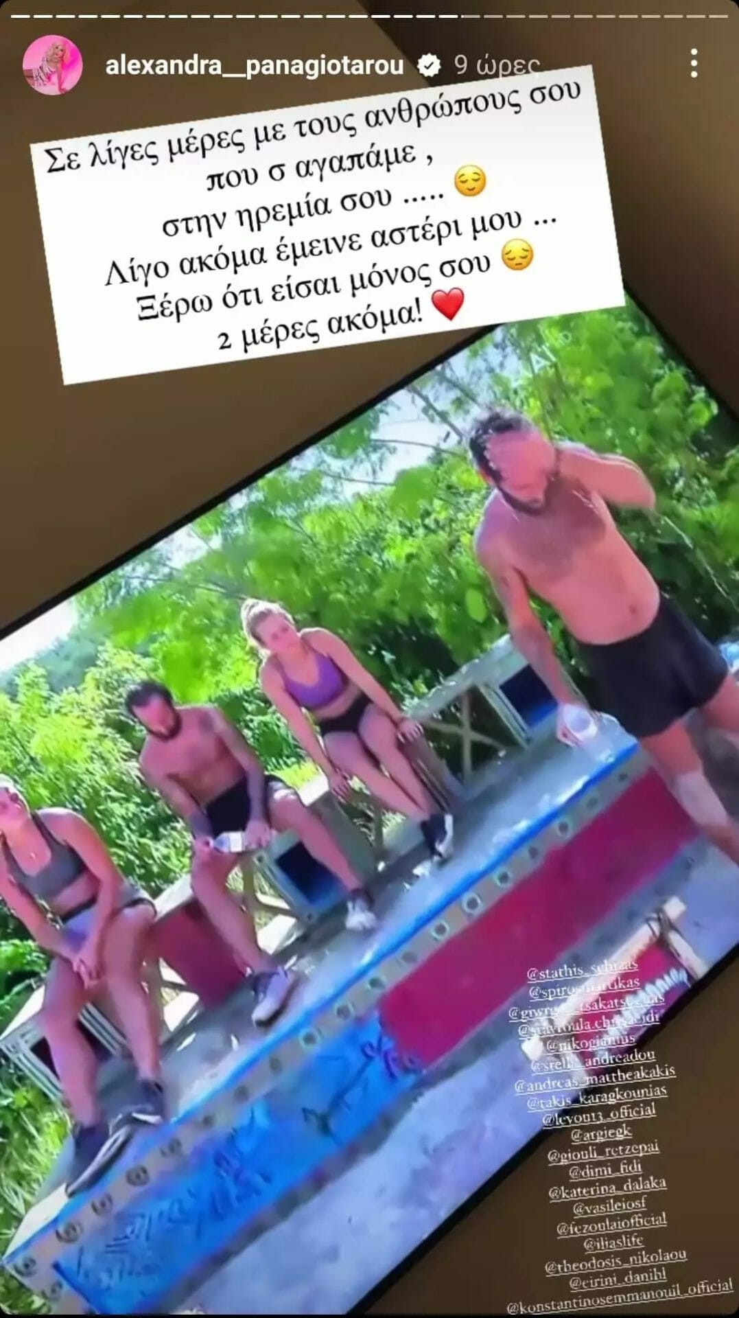 «Πόσο περήφανη! Ο πρίγκιπάς μου! Σε λίγες ημέρες με τους ανθρώπους σου που σε αγαπάμε, στην ηρεμία σου… Λίγο ακόμη έμεινε αστέρι μου. Ξέρω ότι είσαι μόνος σου. Αγάπη μου! Πόσο περήφανη είμαι για σένα! Δεν μου λέει τίποτα το αγωνιστικό μπροστά στον φανταστικό χαρακτήρα σου που όλο αυτόν τον καιρό με βγάζει ασπροπρόσωπη. Είσαι το καλύτερο παιδί» έγραψε η Αλεξάνδρα Παλαιολόγου στα social media.