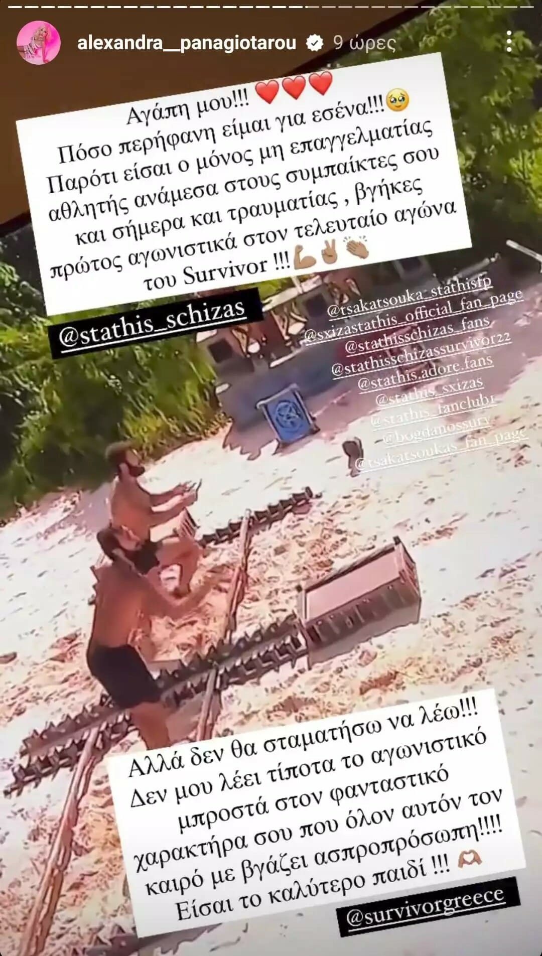 Λίγες ώρες πριν τον ημιτελικό, η Αλεξάνδρα έκανε μια ανάρτηση στον προσωπικό της λογαριασμό της στοο Instagram για τον Στάθη Σχίζα.