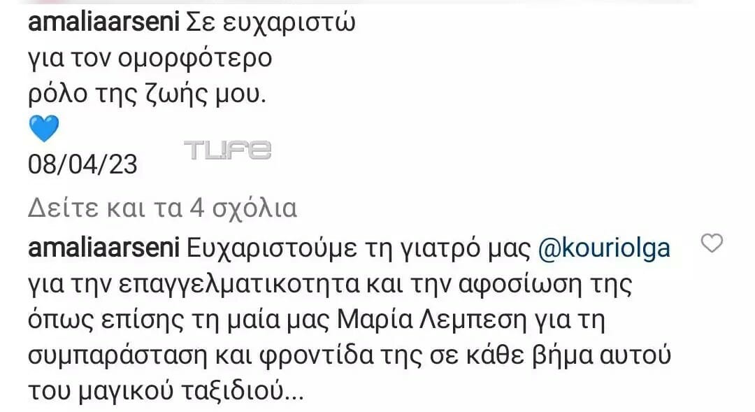 Το χαρμόσυνο γεγονός γνωστοποίησε η ίδια με ανάρτηση στον προσωπικό της λογαριασμό στο Instagram. «Σε ευχαριστώ για τον ομορφότερο ρόλο της ζωής μου. 08/04/23», έγραψε χαρακτηριστικά η Αρσένη.