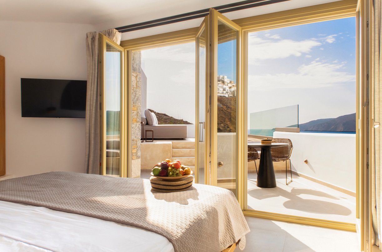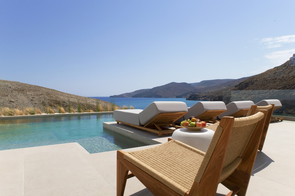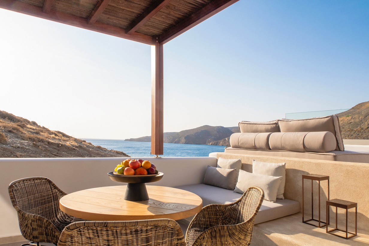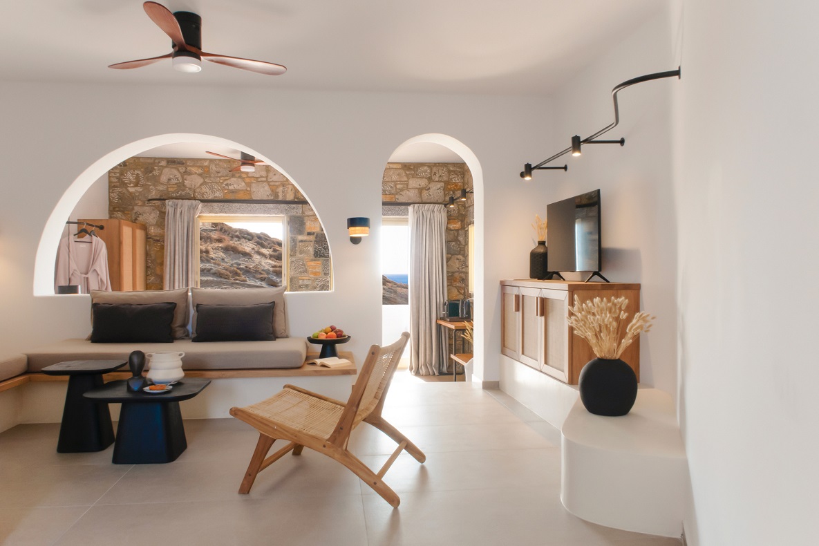 Ακριβώς αυτό που είπα παραπάνω, ο συνδυασμός της οικογενειακής μας παράδοσης με την τις ξέγνοιαστες εμπειρίες διακοπών. Το ξενοδοχείο μας είναι ένα project, το οποίο σχεδιάστηκε και υλοποιήθηκε από την αρχή μέχρι το τέλος πάνω σε αυτόν το άξονα. Σε συνεργασία με τους αρχιτέκτονες του έργου, Κωνσταντίνο Κομηνέα και Έλλη Συμεών δημιουργήσαμε μια ολιστική εμπειρία όπου συνδυάζονται τα φυσικά υλικά, η πέτρα, το ξύλο, οι σύγχρονες ανέσεις – υπηρεσίες, αλλά και τα στοιχεία της φύσης, το φως, η επαφή με το νερό, οι ήχοι της θάλασσας και του αέρα