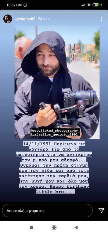 “14/11/1991 Περίμενα με λαχτάρα έξω από το μαιευτήριο για να αντικρίσω τον μικρό μου αδερφό. Θυμάμαι την πρώτη στιγμή που τον είδα και από τότε κατέκτησε την καρδιά μου, την ψυχή μου και όλο μου τον κόσμο. Happy birthday little bro”, έγραψε.