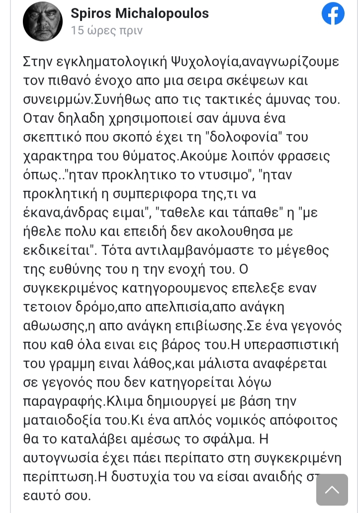 Με ανάρτησή του στο προφίλ του στο Facebook, ο σκηνοθέτης τάσσεται υπέρ της Άννας Μαρίας Παπαχαραλάμπους.