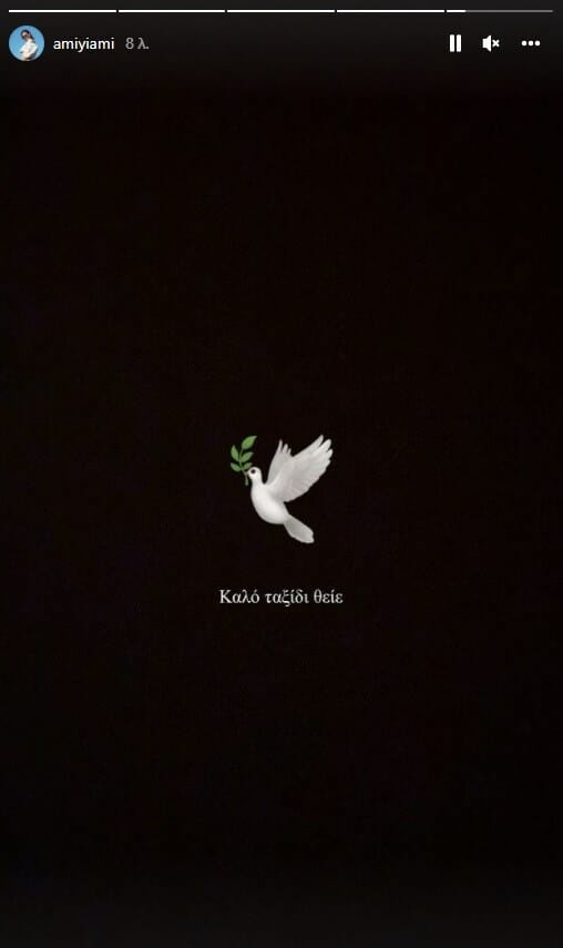Πιο συγκεκριμένα, η Άννα Μαρία Βέλλη κοινοποίησε ένα περιστέρι σε ένα μαύρο φόντο και έγραψε: «Καλό ταξίδι θείε».