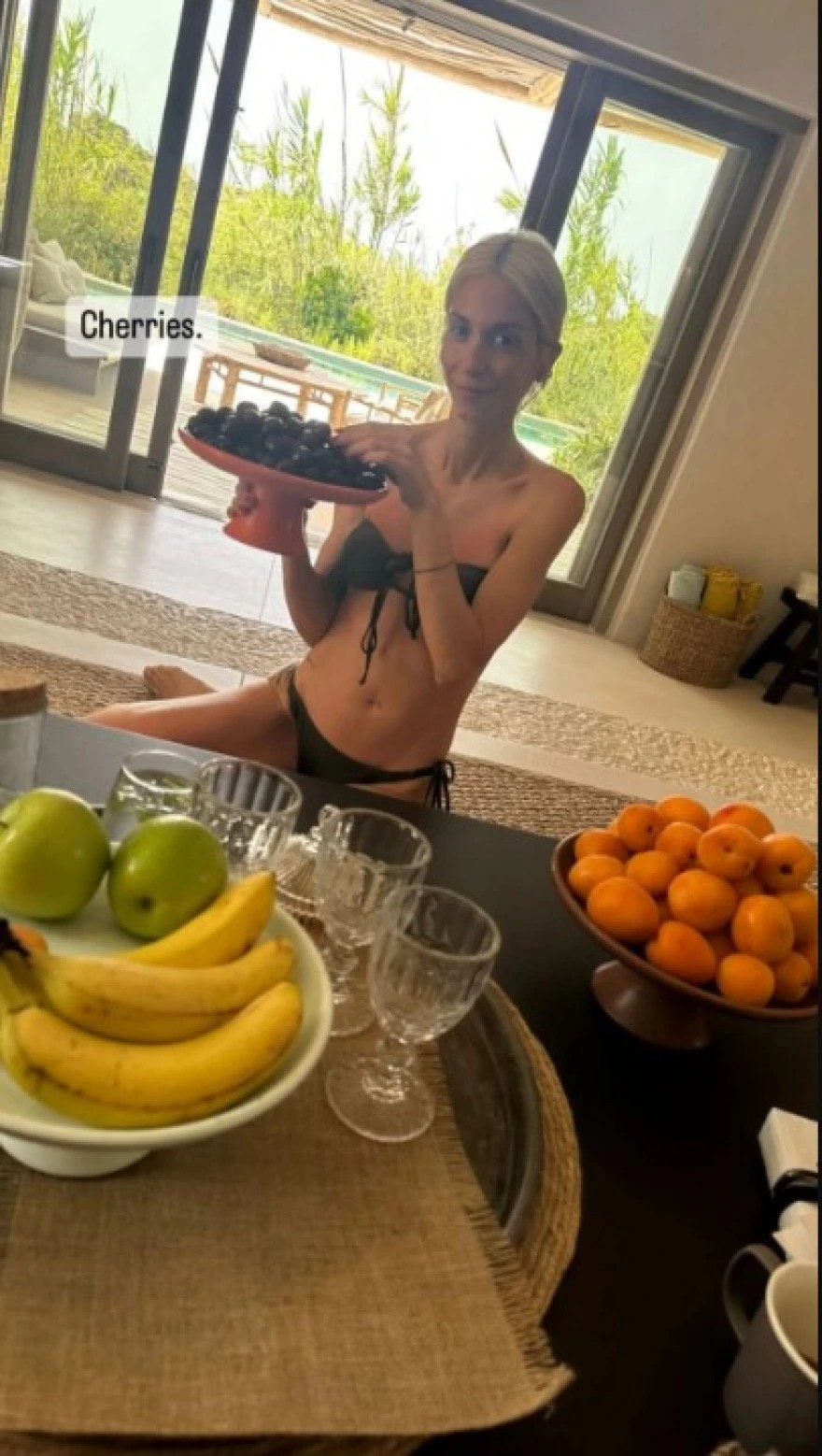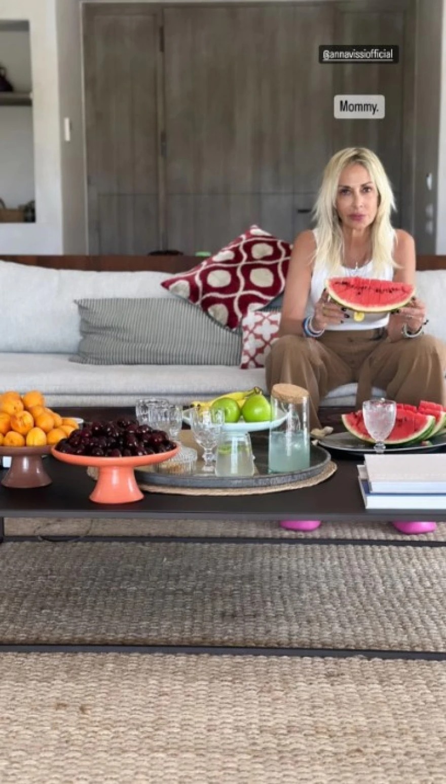 Ανέβασε μάλιστα μια φωτογραφία της μητέρας της να ποζάρει κρατώντας στα χέρια της μια φέτα καρπουζιού. Αντίστοιχα, η Σοφία Καρβέλα πόζαρε με μια πιατέλα με κεράσια.