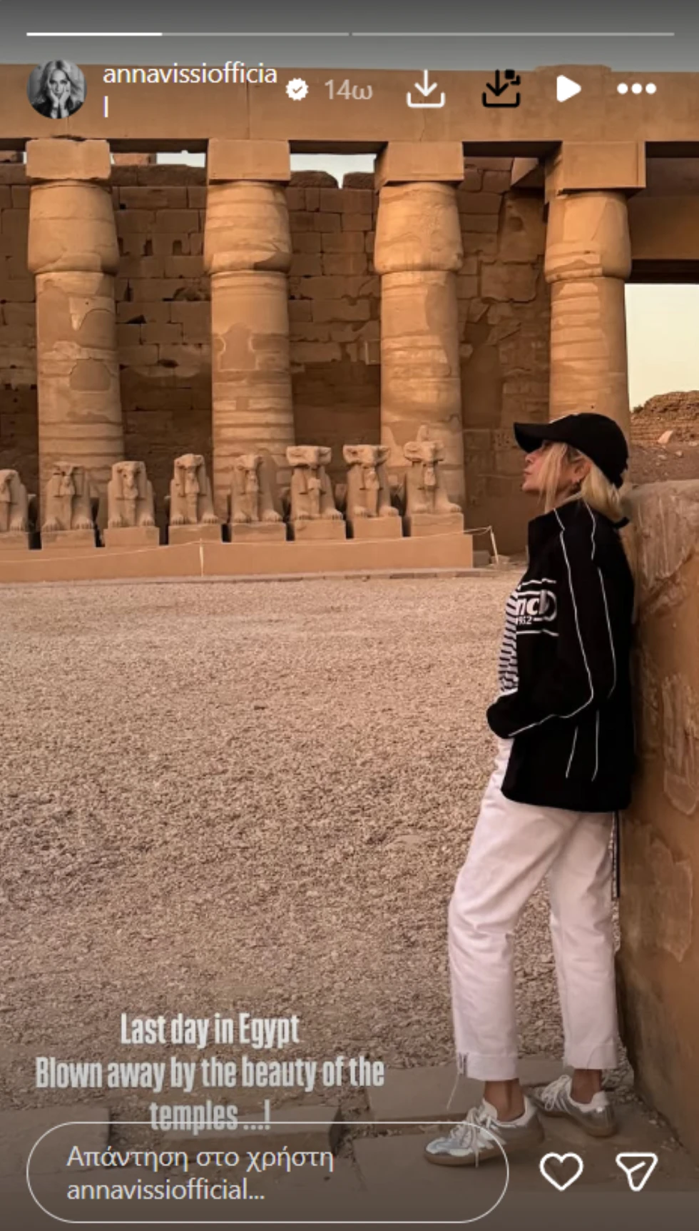 Στο Instagram story που ανάρτησε, η ίδια έγραψε: «Τελευταία μέρα στην Αίγυπτο. Εντυπωσιασμένη από την ομορφιά των ναών».
