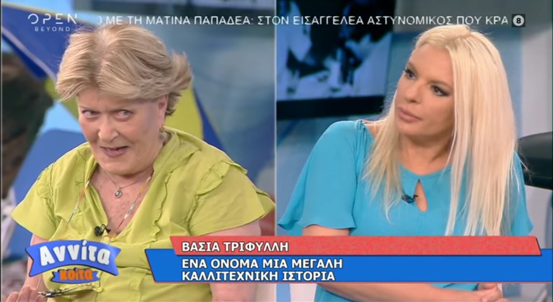 Καλεσμένη της χθεσινής της εκπομπής ήταν η Βάσια Τριφύλλη η οποία από ότι φάνηκε ένιωσε πολύ άνετα με την παρουσιάστρια.