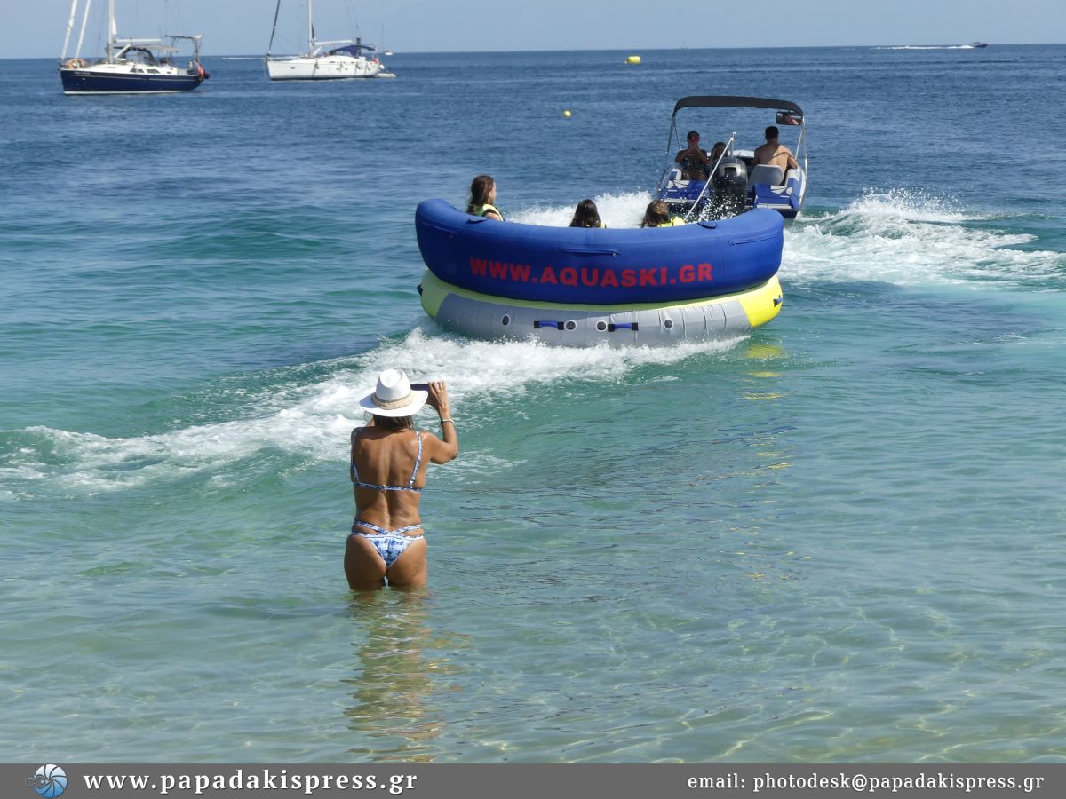 Η Αννίτα Ναθαναήλ βρέθηκε στη Σκιάθο με την οικογένειά της. Και ο φωτογραφικός φακός την απαθανάτισε στις Κουκουναριές όπου έκαναν το μπάνιο τους. Αλλά και θαλάσσια σπορ με τον Γιώργο Αγγελόπουλο.