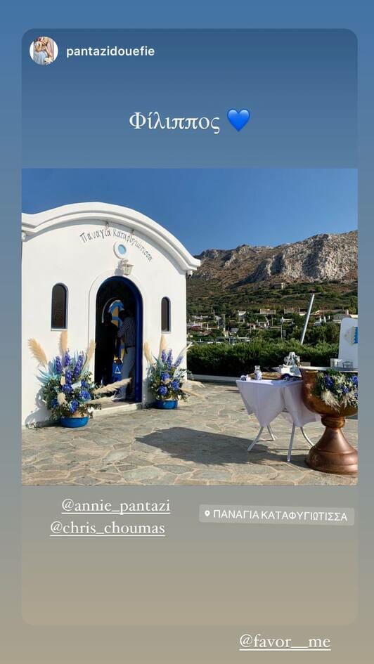 Ο μικρός πήρε το όνομα Φίλιππος! Το μυστήριο έγινε στην Παναγία Καταφυγιώτισσα στην Παλαιά Φώκαια. «Ανυπομονώ ο γιος μου να πάρει την ευλογία του Θεού, το όνομα του είναι Φίλιππος», είπε η Άννυ Πανταζή λίγο πριν το μυστήριο. «Είμαι χαρούμενη με τα δυο παιδάκια», πρόσθεσε.