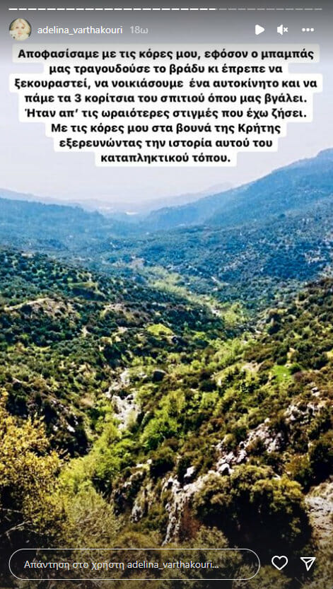 Ήταν από τις ωραιότερες στιγμές που έχω ζήσει. Με τις κόρες μου στα βουνά της Κρήτης εξερευνώντας την ιστορία αυτού του καταπληκτικού τόπου»