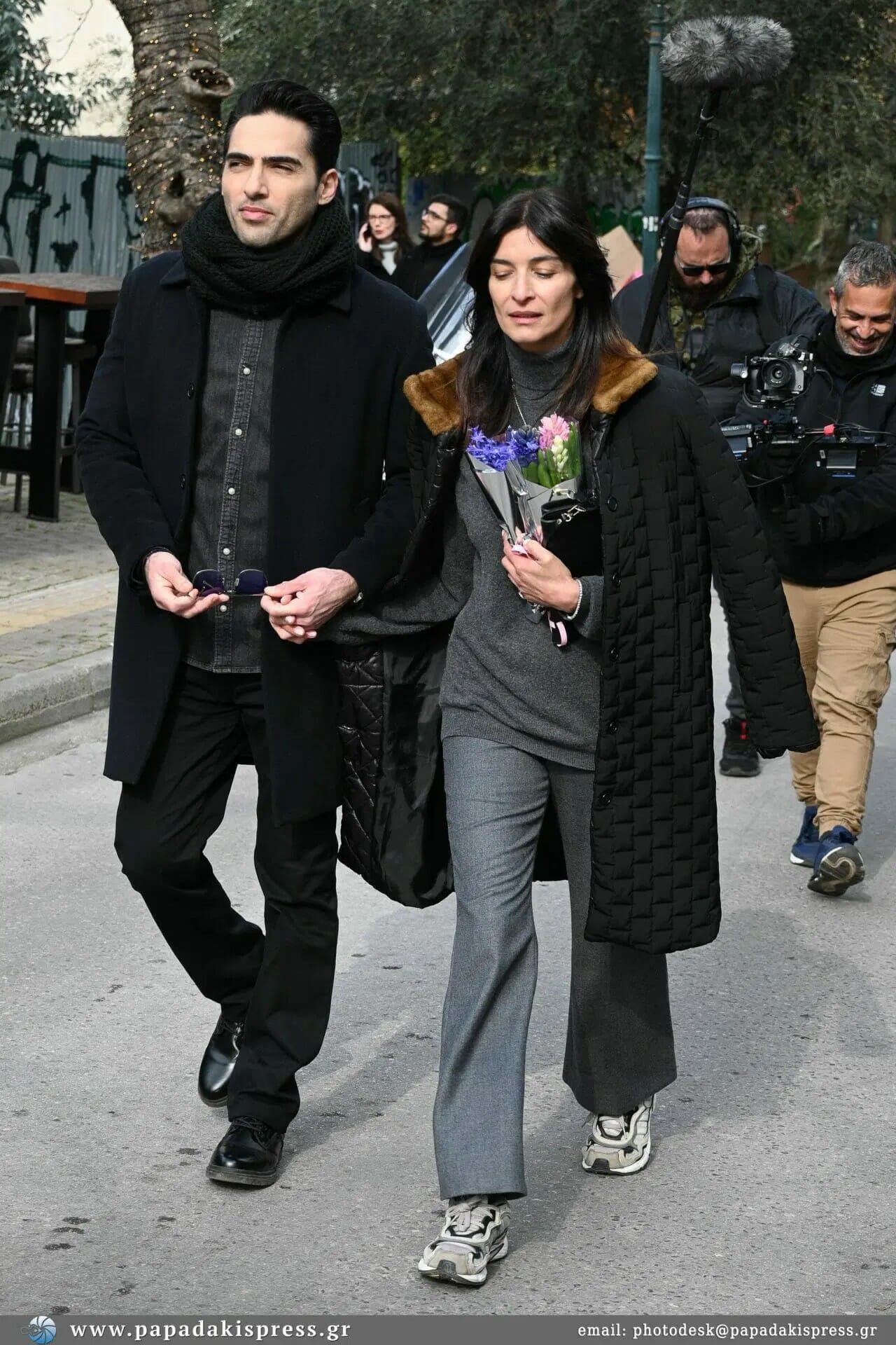 Μαζί με τον σκηνοθέτη Ανδρέα Γεωργίου και τα υπόλοιπα μέλη της παραγωγής οι δύο ηθοποιοί βρέθηκαν το πρωί του Σαββάτου για γύρισμα εκτός Μάνης και συγκεκριμένα στην πλατεία της Κηφισιάς.