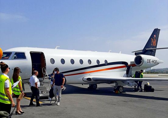 O διάσημος ηθοποιός έφτασε αργά το μεσημέρι της Παρασκευής με ιδιωτικό αεροπλάνο Gulfstream G200 Galaxy.