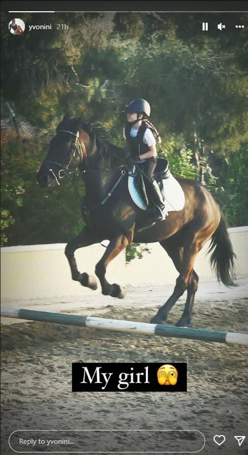 Έτσι και τώρα η σχεδιάστρια μόδας απαθανάτισε την κόρη της να κάνει ιππασία και να φορά την ειδική ενδυμασία και τις μπότες γράφοντας στη λεζάντα: «Το κορίτσι μου!».