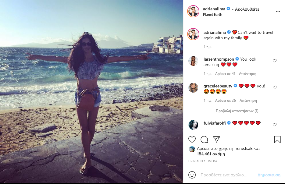 Η πανέμορφη Αντριάνα Λίμα με ανάρτησή της στον προσωπικό της λογαριασμό στο Instagram, κάνει throwback στις φωτογραφίες της από τα καλοκαιρινά της ταξίδια.