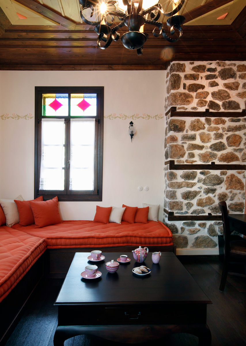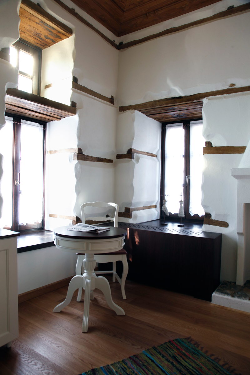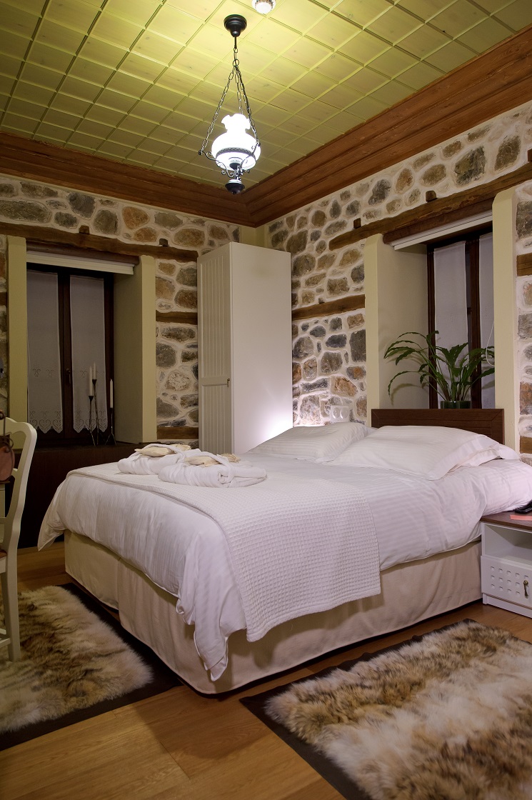 Τα εννέα δωμάτια με τις παραδοσιακές ονομασίες, ιδανικά για ταξιδιώτες αναψυχής και επαγγελματίες (Ντόμπλιτσα, Τσιαρσί, Γκουλουμπίντσα, Τσιαρδάκι, Ντολτσό, Γκαλιότρυπες, Απόζαρι, Μπουζμπουνάρι και Πέτσια) διατηρούν τη ζεστασιά της παράδοσης, με ξύλινες οροφές, χειροποίητα έπιπλα και περίτεχνα τζάκια, προσφέροντας έναν ιδανικό χώρο χαλάρωσης.