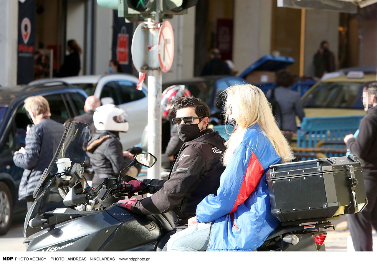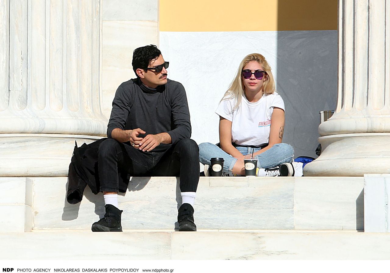 Ο φωτογραφικός φακός τους απαθανάτισε να απολαμβάνουν τον ήλιο αλλά και μια χαλαρή συζήτηση στα σκαλάκια του Ζαππείου. Αμέσως μετά εθεάθησαν στο κέντρο της Αθήνας να κινούνται με τη μηχανή του ηθοποιού.