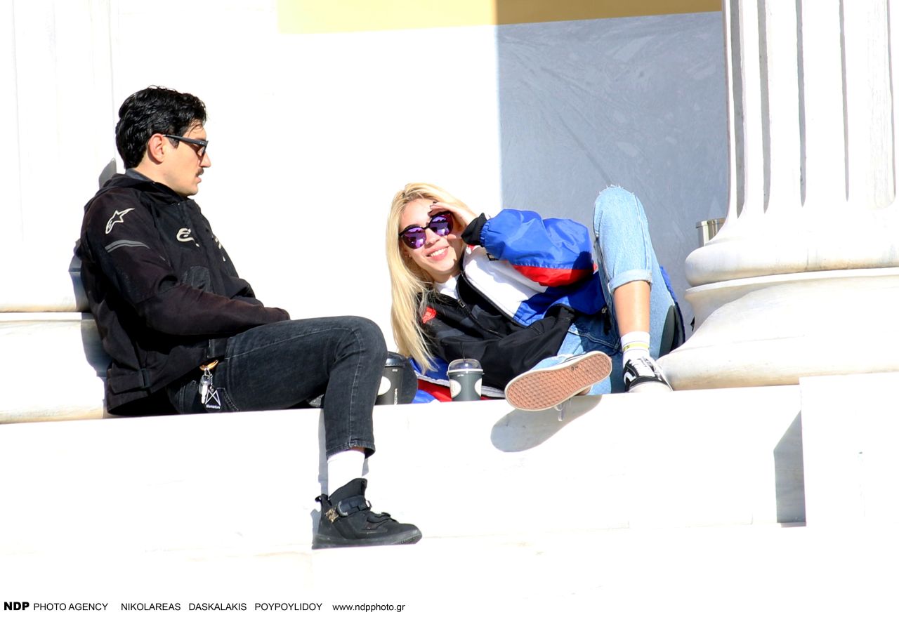 Ο φωτογραφικός φακός τους απαθανάτισε να απολαμβάνουν τον ήλιο αλλά και μια χαλαρή συζήτηση στα σκαλάκια του Ζαππείου. Αμέσως μετά εθεάθησαν στο κέντρο της Αθήνας να κινούνται με τη μηχανή του ηθοποιού.