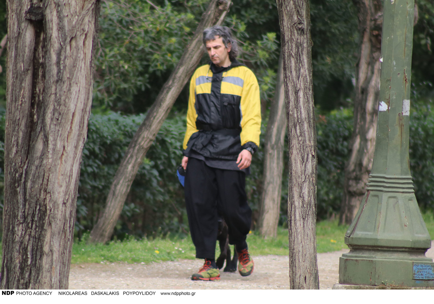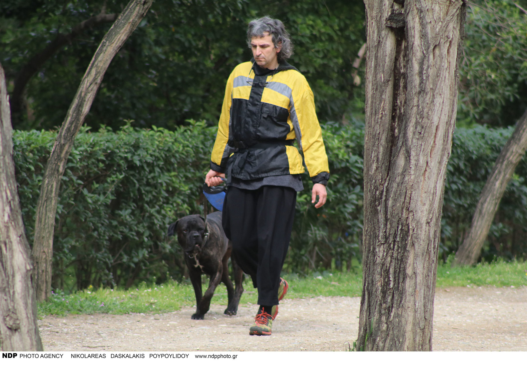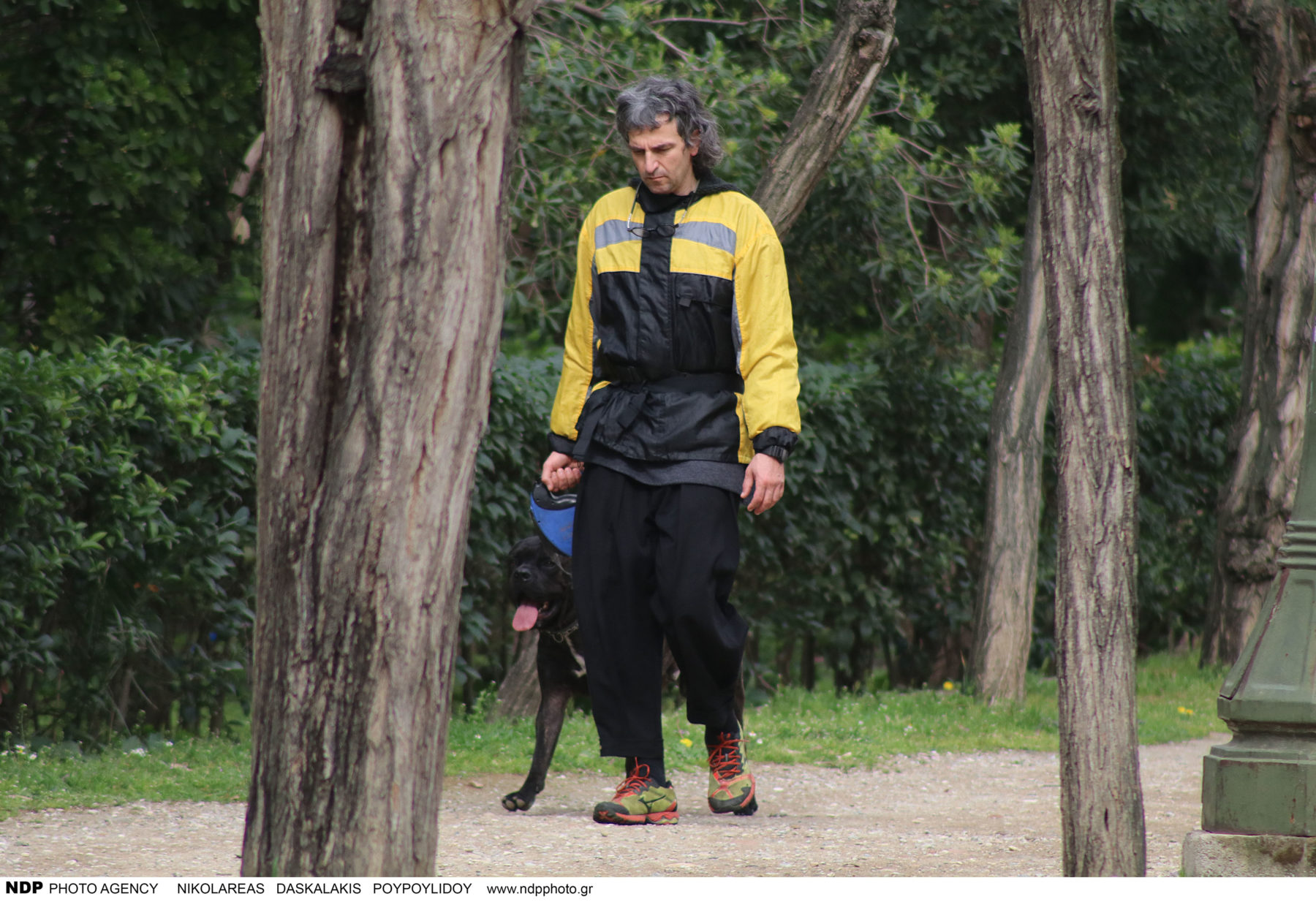 Αυτή κι αν ήταν έκπληξη! Σε μια σπάνια εμφάνισή του που κατέγραψε ο φακός, ο Άρης Σερβετάλης έβγαλε τον σκύλο του βόλτα στο Ζάππειο.