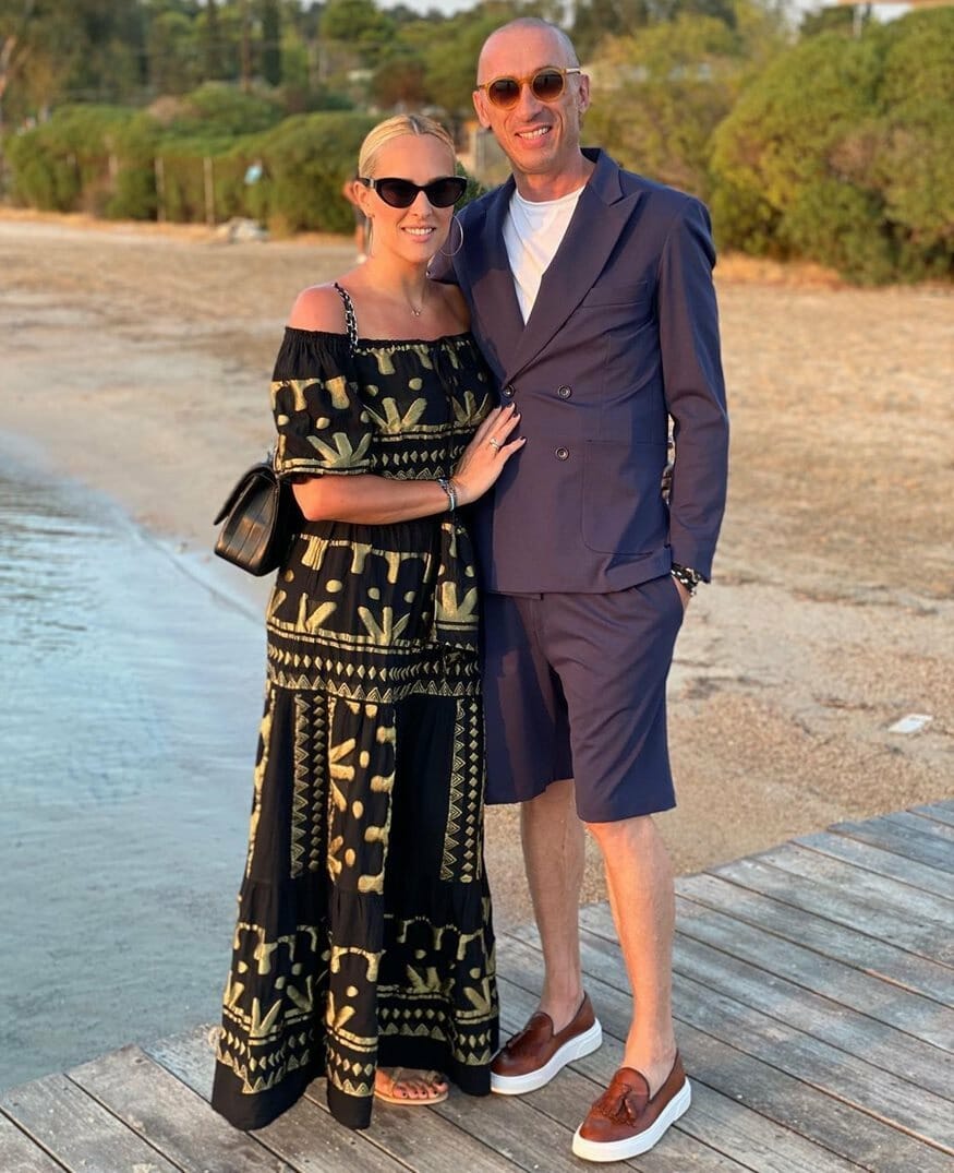 Κουμπάροι τους ήταν η Μαρία Μαντά και ο σχεδιαστής Γιώργος Παπαδόγαµβρος.