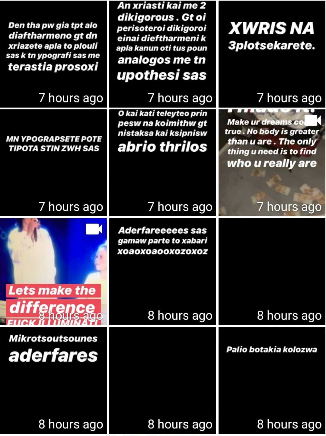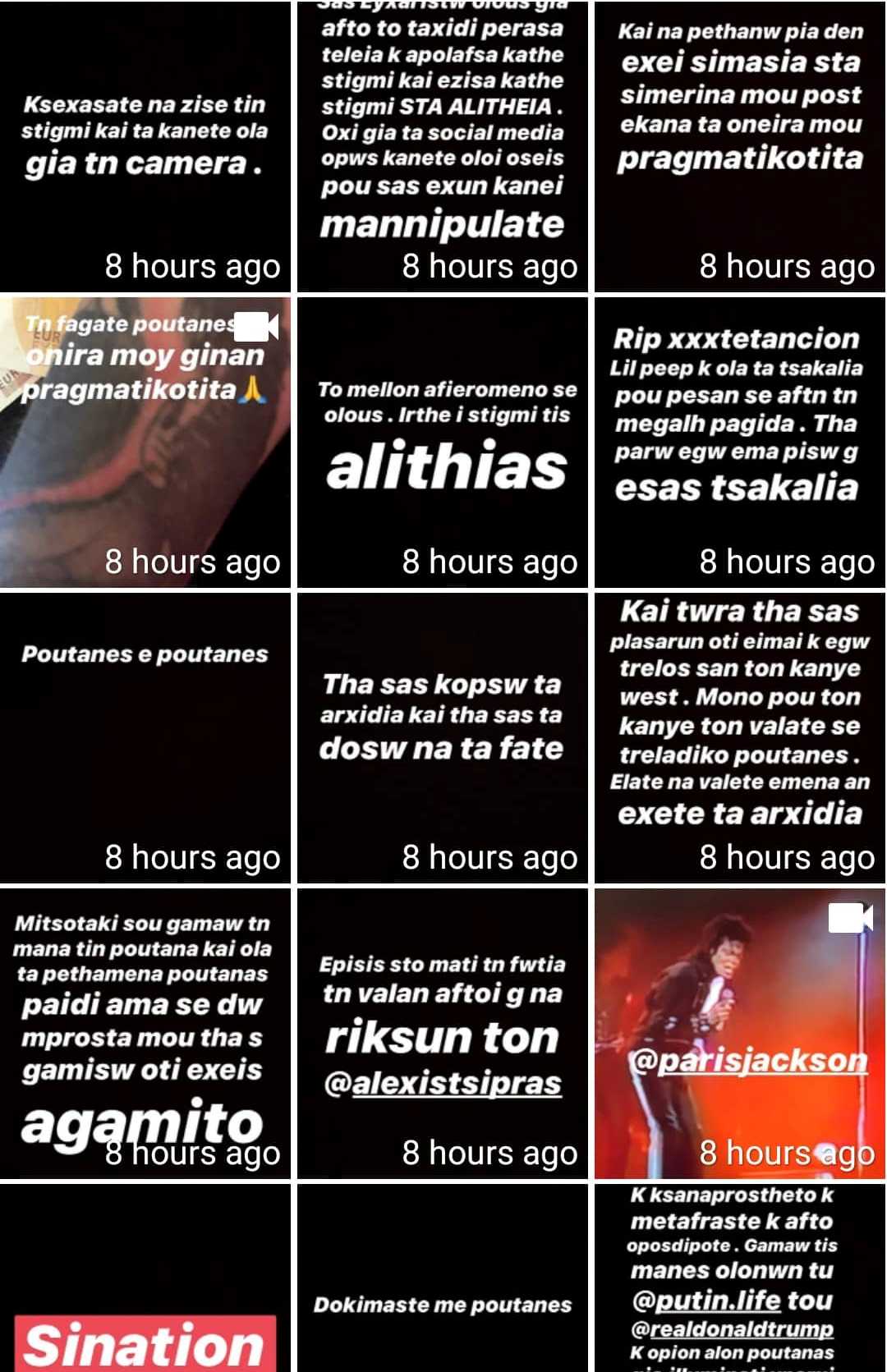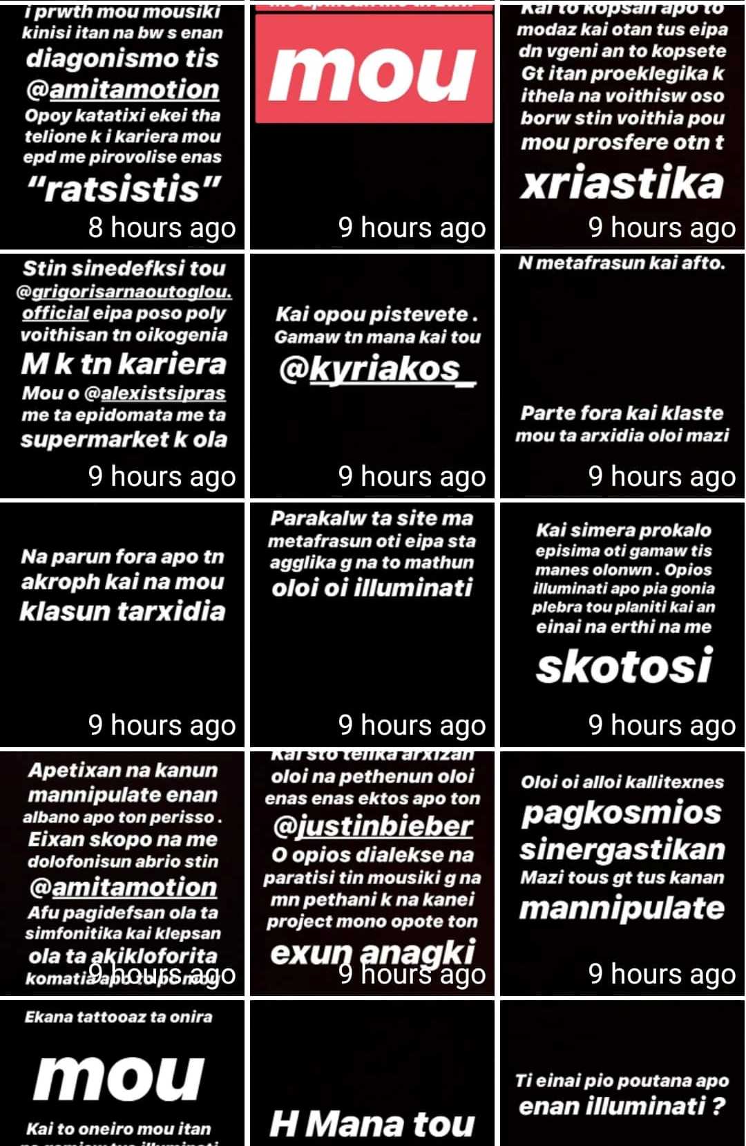 Με 76 αναρτήσεις στο Instagram μέσα σε μια νύχτα λοιπόν στράφηκε εναντίον του Κυριάκου Μητσοτάκη, της Φουρέιρα και των ιλουμινάτι και άλλαξε το όνομα του λογαριασμού του στο Instagram σε Lil jesus. Η αλήθεια είναι πως ο λόγος του δεν είχε καμία συνοχή, ωστόσο από τα δεκάδες stories που ανέβηκαν στο Instagram ήταν σαφές πως στόχευε συγκεκριμένα άτομα.