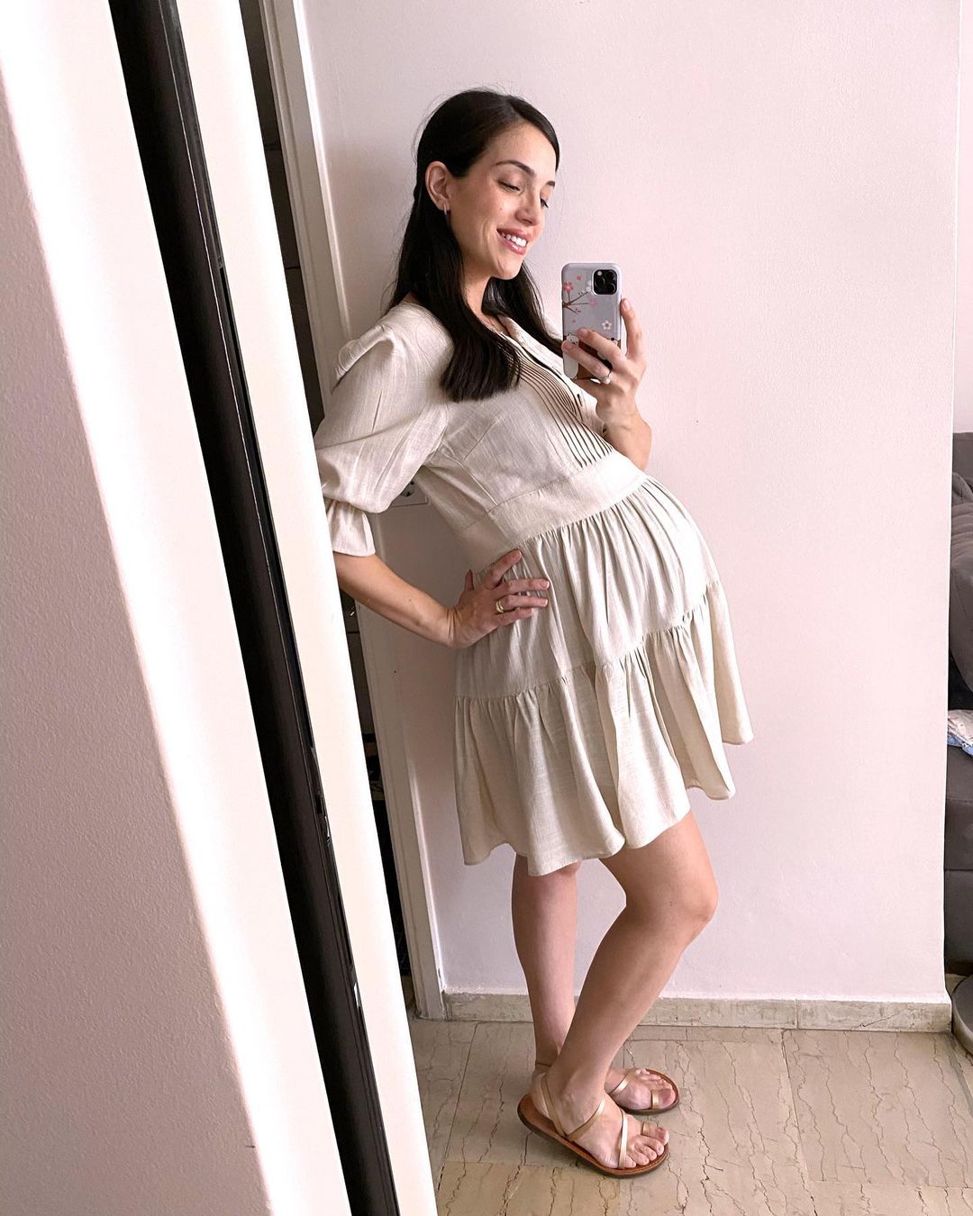 Σήμερα μάλιστα, αποφάσισε να μοιραστεί 2 φωτογραφίες στις οποίες βλέπουμε πόσο έχει φουσκώσει η κοιλίτσα της στον 8ο μήνα της εγκυμοσύνης.