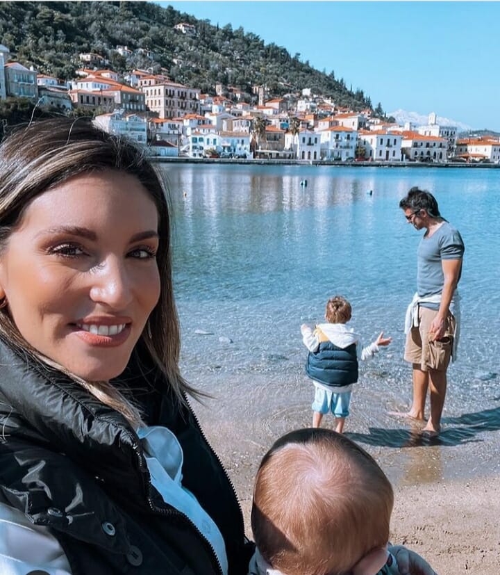 Στη μια φωτογραφία βλέπουμε να ποζάρει μαζί με την οικογένειά της δίπλα στη θάλασσα γράφοντας: «Εμείς».