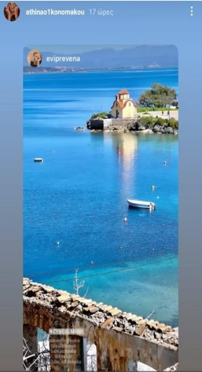 Ενώ σε άλλη ανάρτησή της απαθανάτισε έ να χταπόδι και την ονειρική θέα της Μάνης γράφοντας: «Nαι, αυτό το μέρος είναι μαγικό».