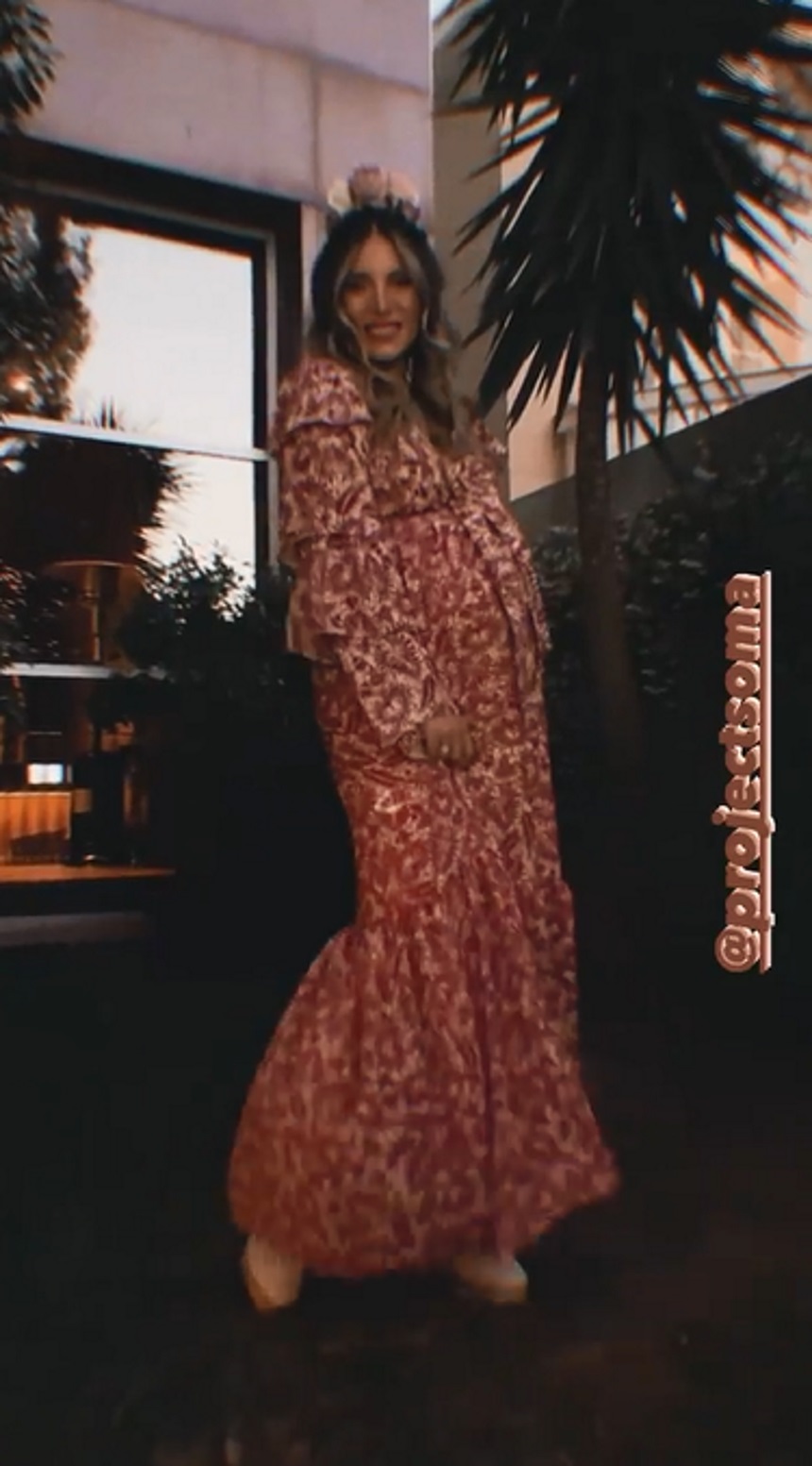 Έτσι, φόρεσε ένα maxi αέρινο φόρεμα και μαζί με τον σύζυγό της τίμησαν με την παρουσία τους την εορτάζουσα.
