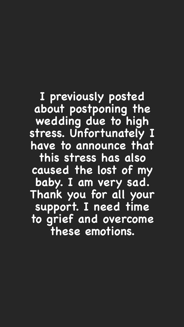 “Έκανα προηγουμένως μια ανάρτηση για την ακύρωση του γάμου μας εξαιτίας του αυξημένου άγχους.