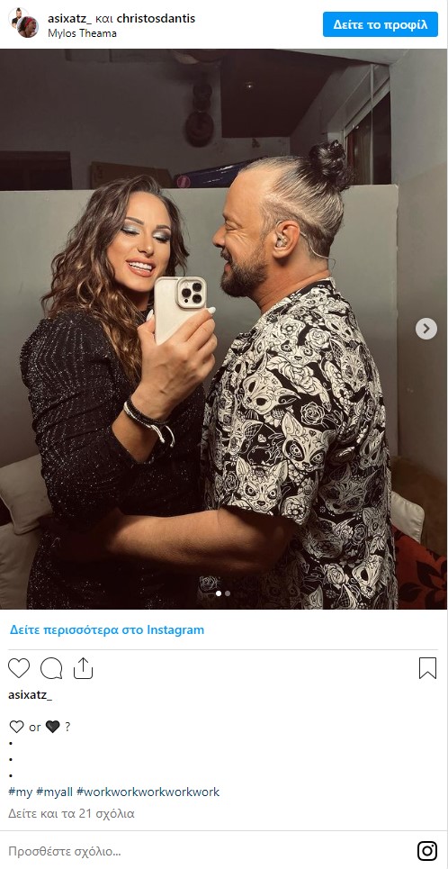 Ολοι γνωρίζουν πως ο αγαπημένος της Ασημίνας είναι ο Χρήστος Δάντης, ο οποίος και τη στηρίζει σε κάθε της βήμα. Το ζευγάρι είναι μαζί πολλά χρόνια και δεν έκρυψε ποτέ τη σχέση του, παρόλο που πολλές φορές έχει δεχτεί πυρά λόγω της διαφοράς ηλικίας. Ομως, ο έρωτας χρόνια δεν κοιτά…