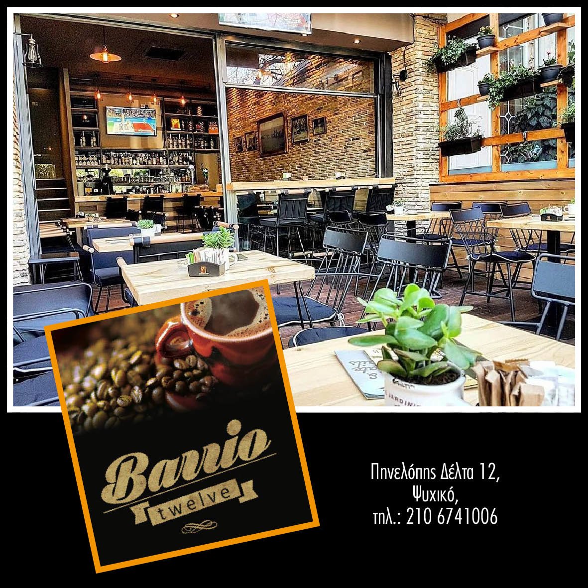 Εδώ θα πιείτε και θα γνωρίσετε τον πολύ καλό καφέ El mundo, τον οποίο ο ιδιοκτήτης του Barrio Twelve, Νίκος Καρυστινός, διαθέτει και προμηθεύει και σε άλλα καταστήματα! Ένας εύγευστος καφές που παράγεται και φτιάχνεται στην Ελλάδα και πραγματικά αξίζει να τον δοκιμάσετε.