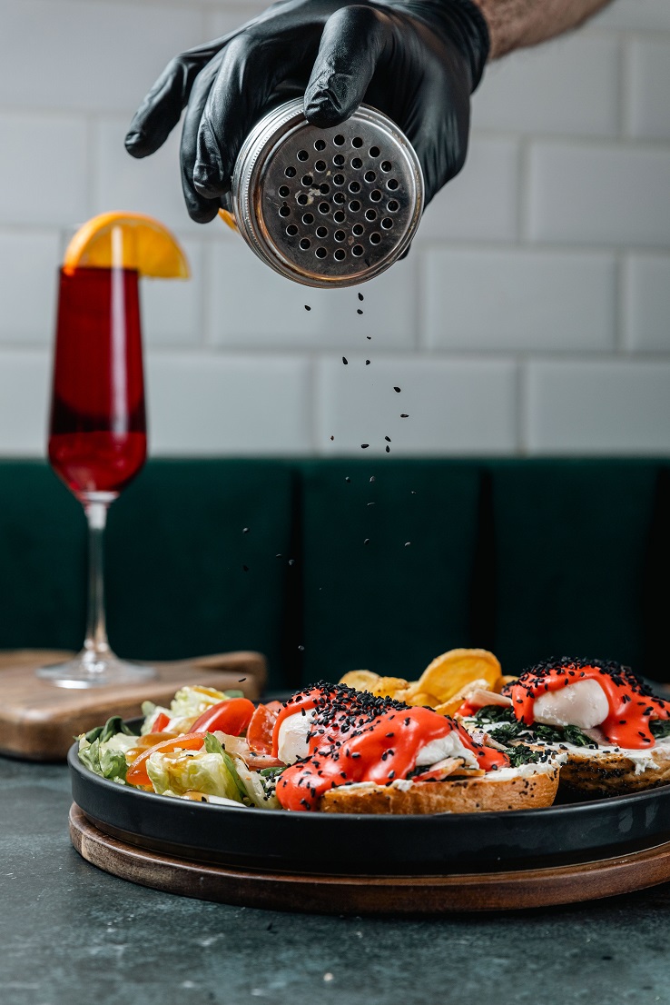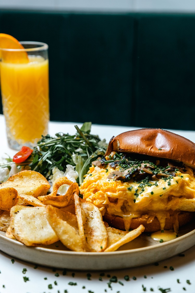 Το μενού περιλαμβάνει επιλογές σε ομελέτες, benedict, pancakes, bagels, club sandwich, eggsecutive burgers, τα οποία συνοδεύονται μοναδικά με mimosa, το cocktail πρωινού που μπορείτε να πιείτε από το πρωί και αποτελείται από αφρώδη οίνο και χυμό πορτοκαλιού.