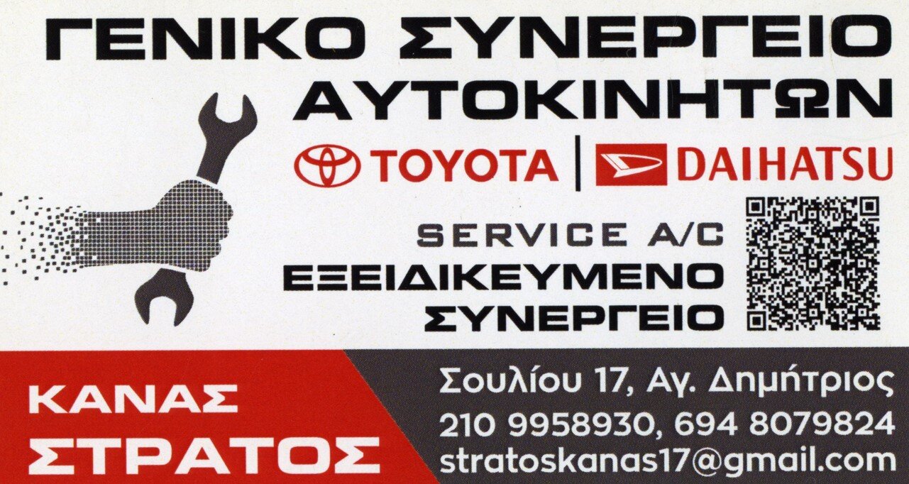 Εξειδικευμένο συνεργείο αυτοκινήτων Daihatsu και Toyota. Με εμπειρία και επαγγελματισμό αναλαμβάνει service αυτοκινήτων των παραπάνω εταιρειών με τον πλέον αξιόπιστο τρόπο. Επιπλέον, αναλαμβάνει service a/c αυτοκινήτων.