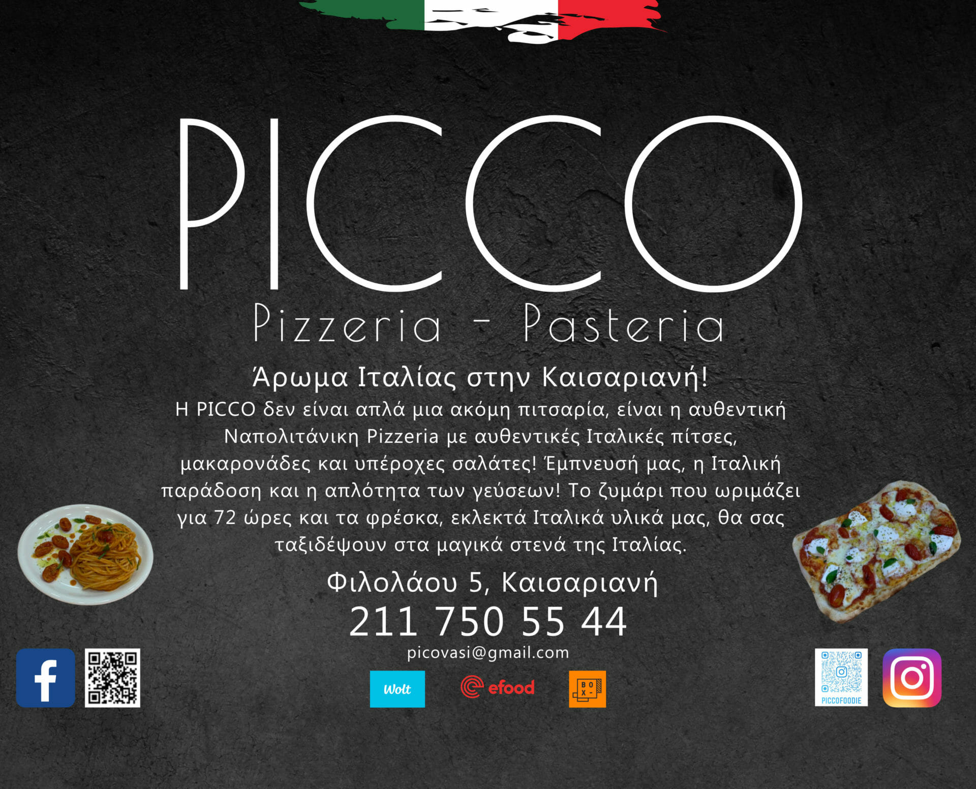 Άρωμα Ιταλίας στην Καισαριανή! Η Picco δεν είναι απλώς ακόμη μια πιτσαρία, είναι η αυθεντική Ναπολιτάνικη pizzeria με αυθεντικές Ιταλικές πίτσες, pasta και υπέροχες σαλάτες! Έμπνευση μας η Ιταλική παράδοση […]