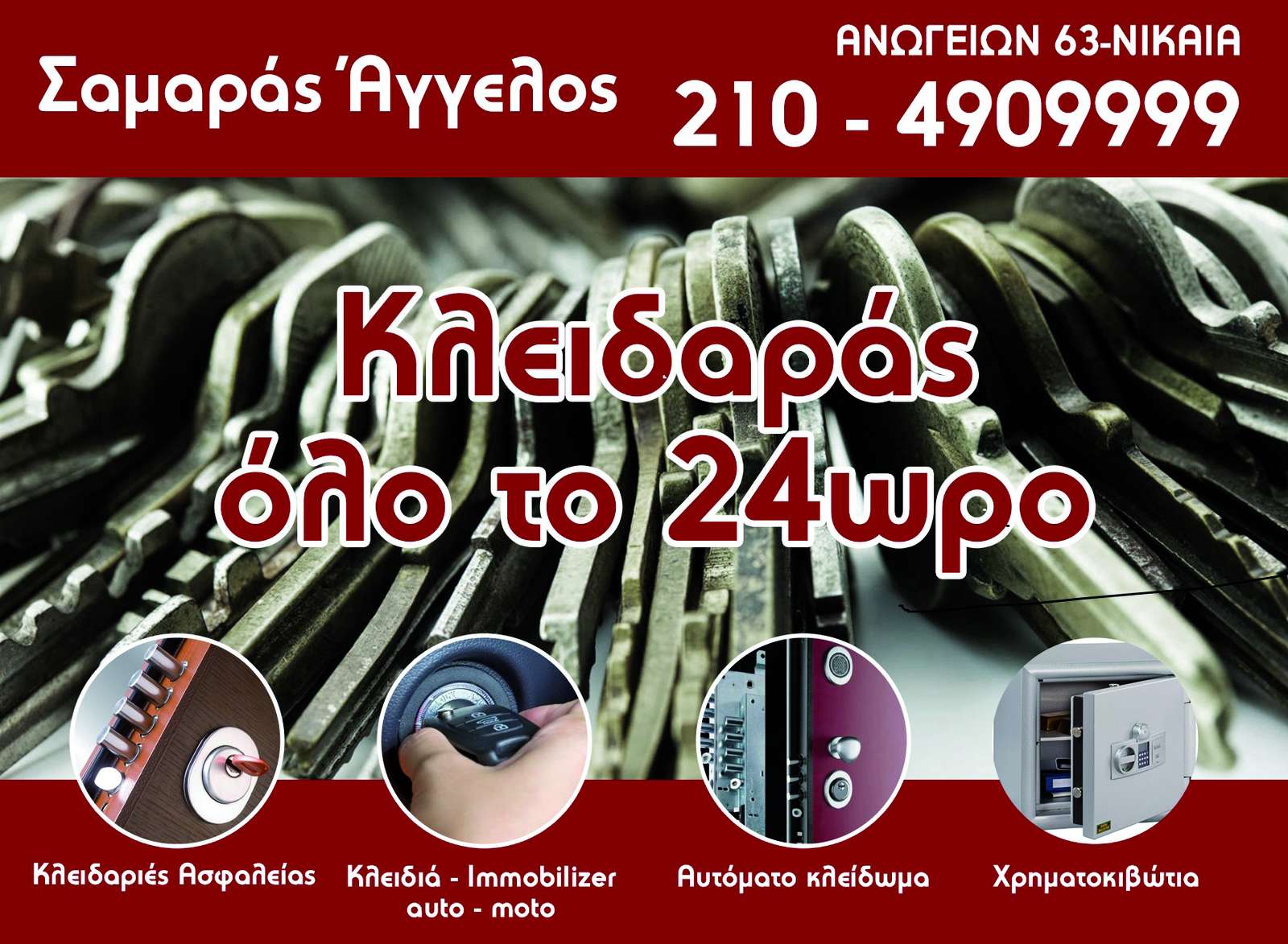 Κλειδαράς όλο το 24ωρο Κλειδαριές Ασφαλείας Κλειδιά Immobilizer Αυτόματο κλείδωμα Χρηματοκιβώτια Αναβάθμιση όλων των παλαιών κλειδαριών με κλειδαριές νέας γενιάς