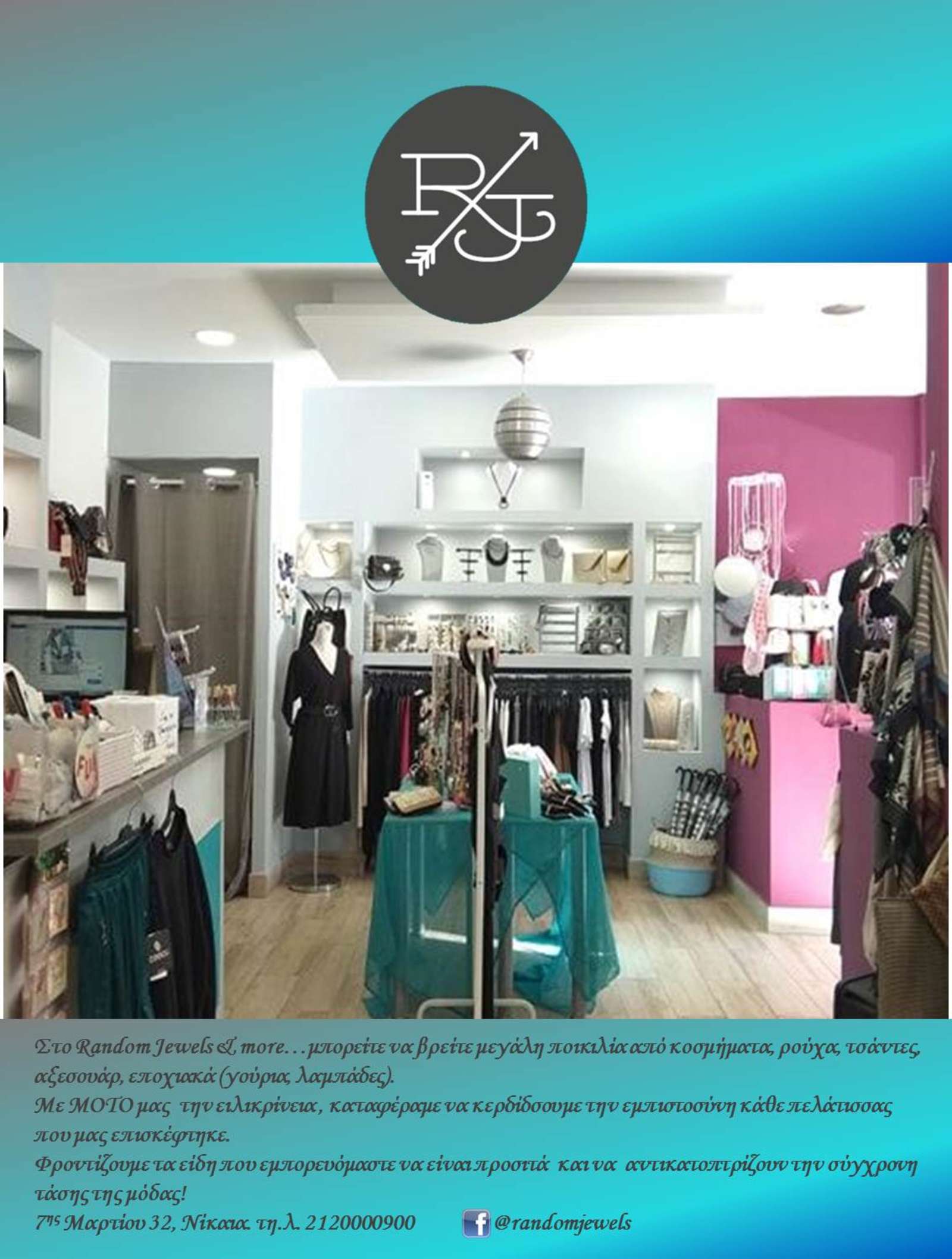 Στο Random jewels & more… μπορείτε να βρείτε μεγάλη ποικιλία από κοσμήματα, ρούχα, τσάντες, αξεσουάρ, εποχιακά (γούρια, λαμπάδες). Με ΜΟΤΟ μας την ειλικρίνεια, καταφέραμε να κερδίσουμε την εμπιστοσύνη κάθε πελάτισσας […]