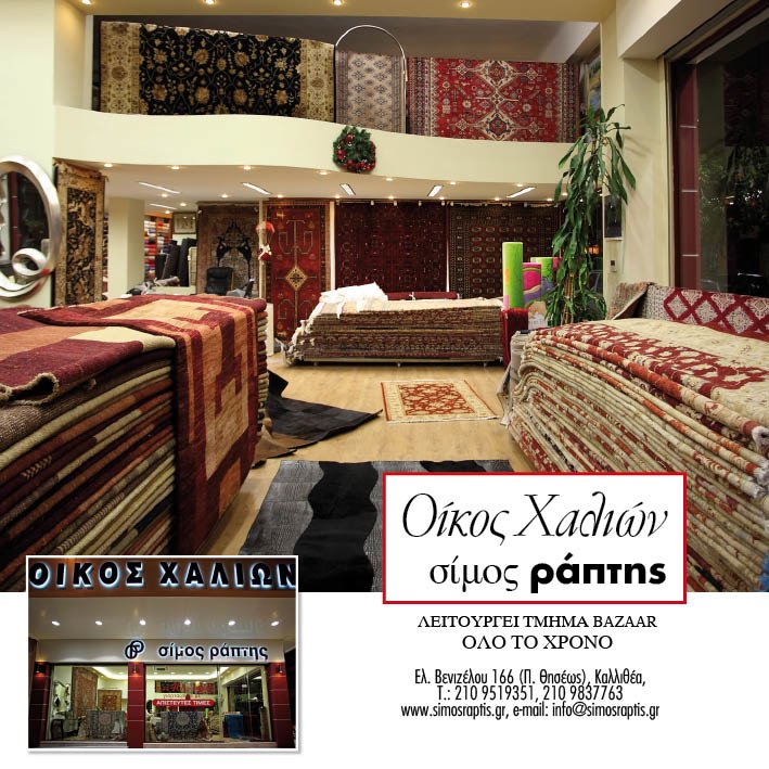 Οίκος Χαλιών Ράπτη   Τα χαλιά μας στολίζουν τα ωραιότερα σπίτια!Η δική μας πείρα και γνώση με τη δική σας αισθητική, μπορούν να κάνουν τον χώρο σας μοναδικό!Μεγάλη ποικιλία! Ποιότητα! […]