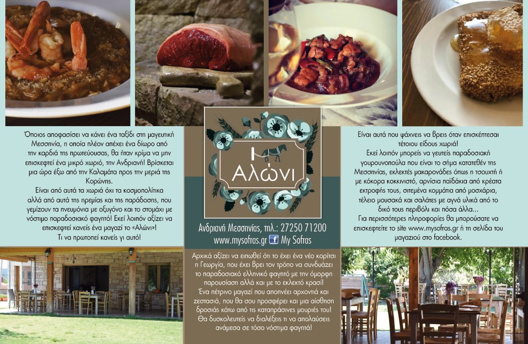 ΑΝΔΡΙΑΝΗ ΜΕΣΣΗΝΙΑΣ Τηλ:27250 71200 www.mysofras.gr fb: My Sofras
