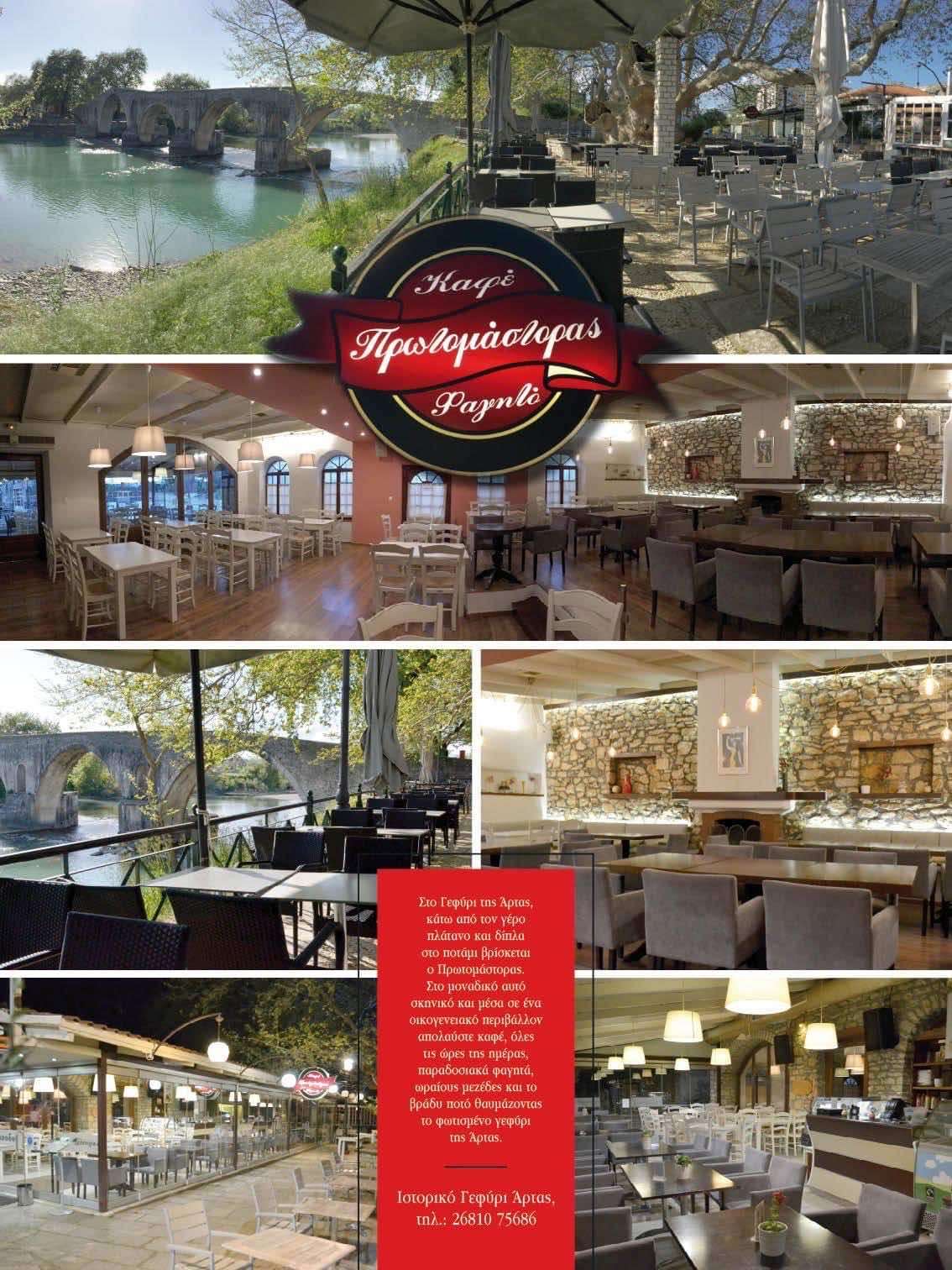 Πρωτομάστορας – Café – Εστιατόριο Στο γεφύρι της Άρτας, κάτω από τον γέρο πλάτανο και δίπλα στο ποτάμι κάντε μια στάση στον Πρωτομάστορα. Ένα ξεχωριστό μαγαζί που από το 1991 […]