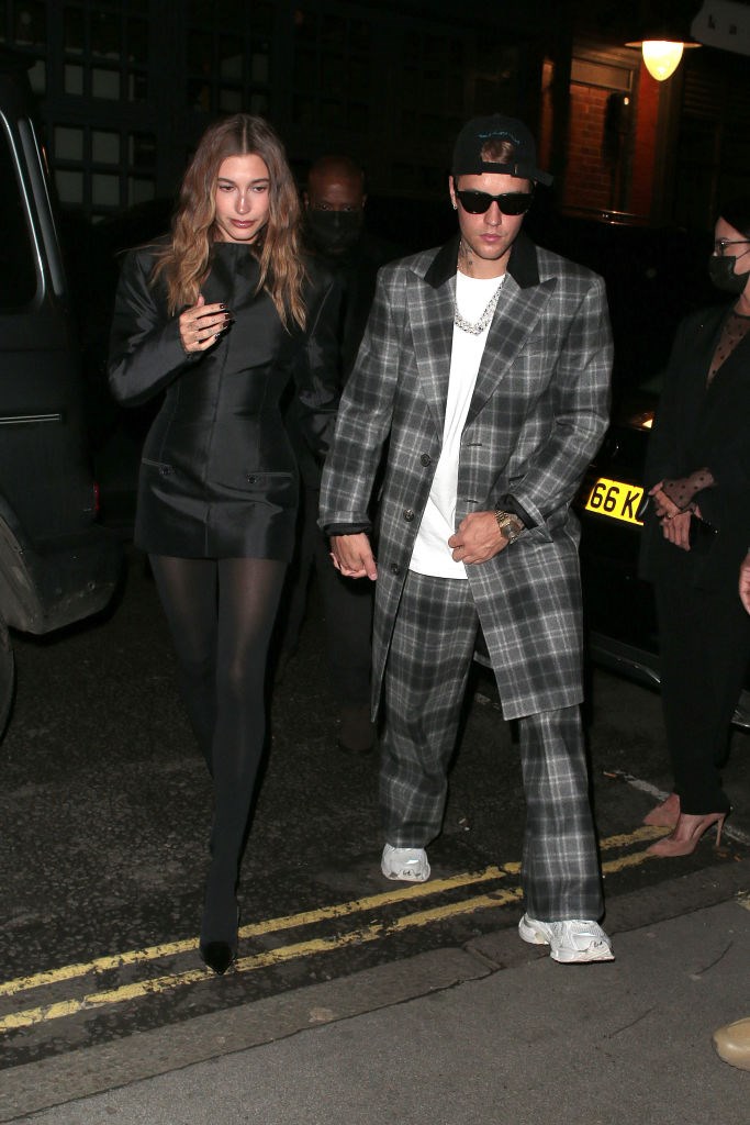 Ενώ η Hailey ένα μίνι μαύρο φόρεμα του brand ACNE Studios, το οποίο έφερε μικρές τσέπες με φερμουάρ στο μπροστινό μέρος και είχε τονισμένους ώμους.